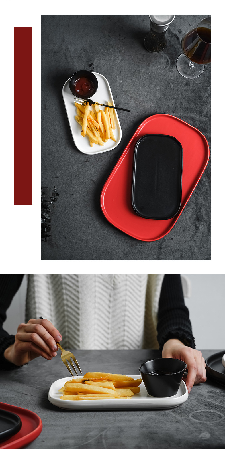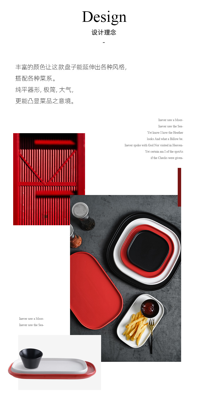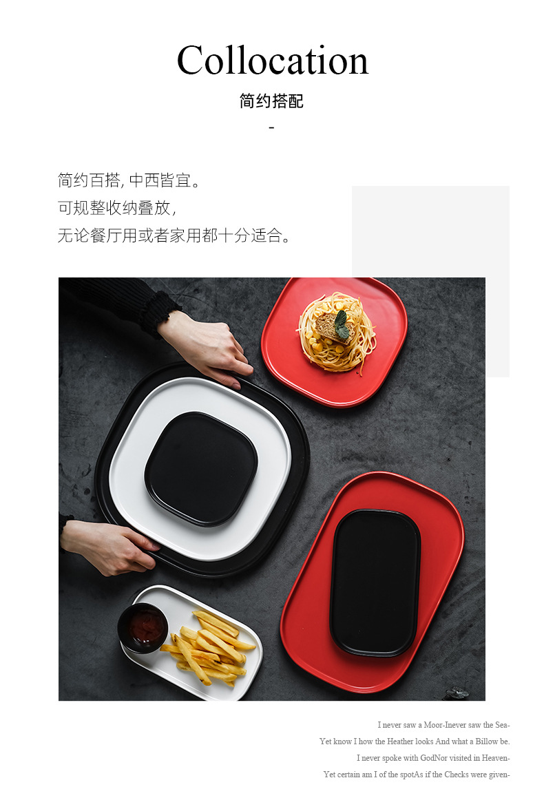 厂家批发陶瓷亚光长方形托盘北欧简约西餐厅牛排热菜盘平底沙拉盘 English | 投诉