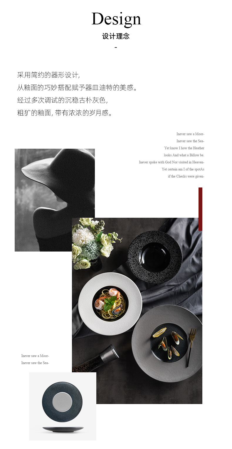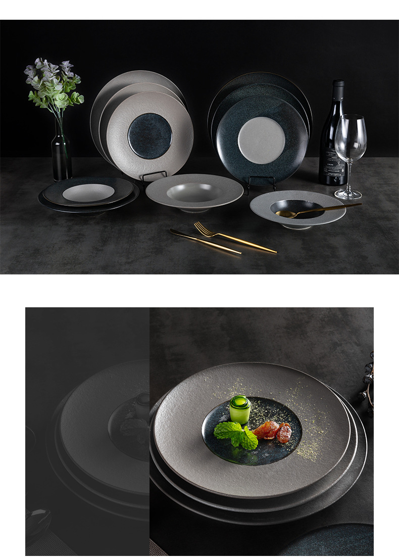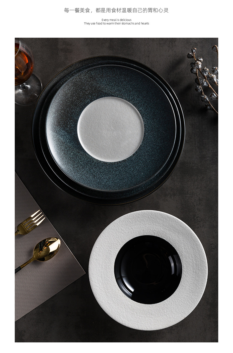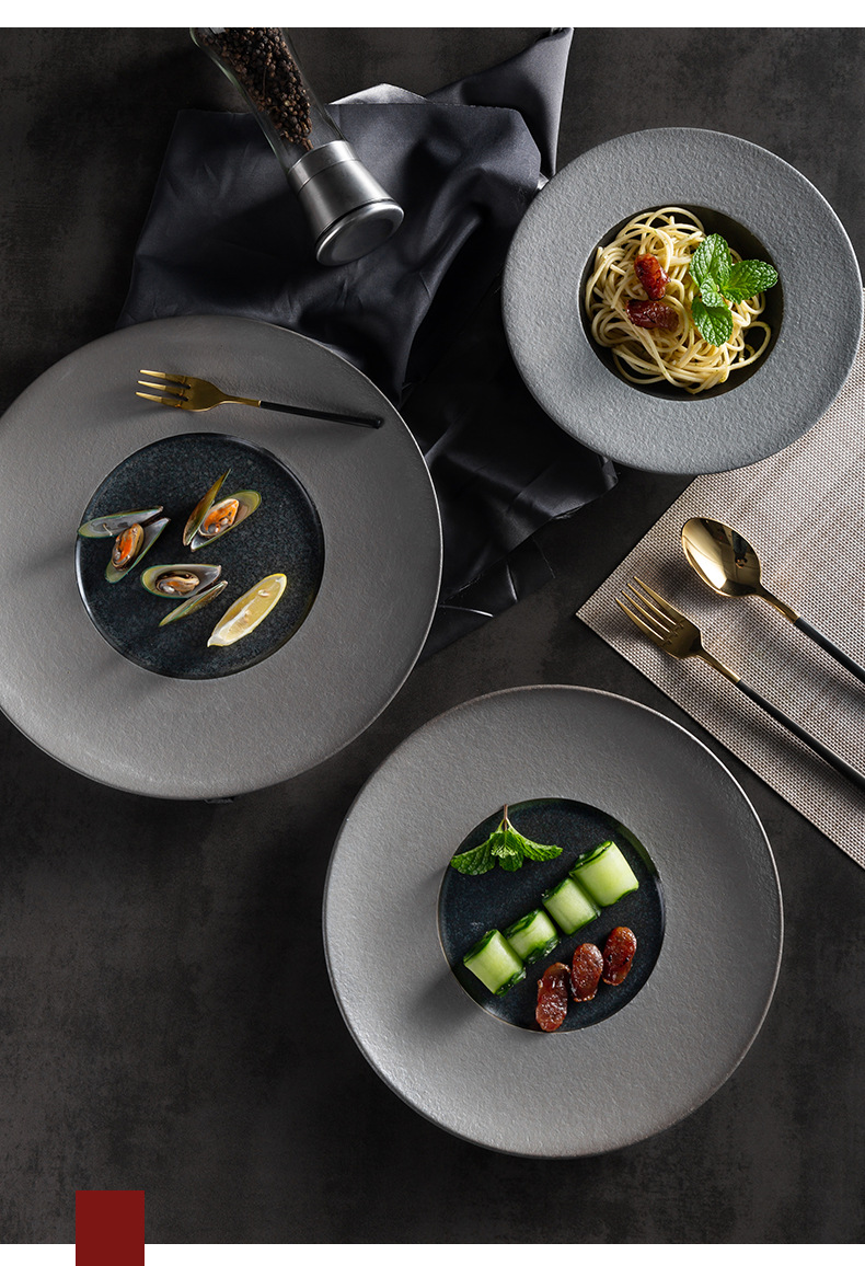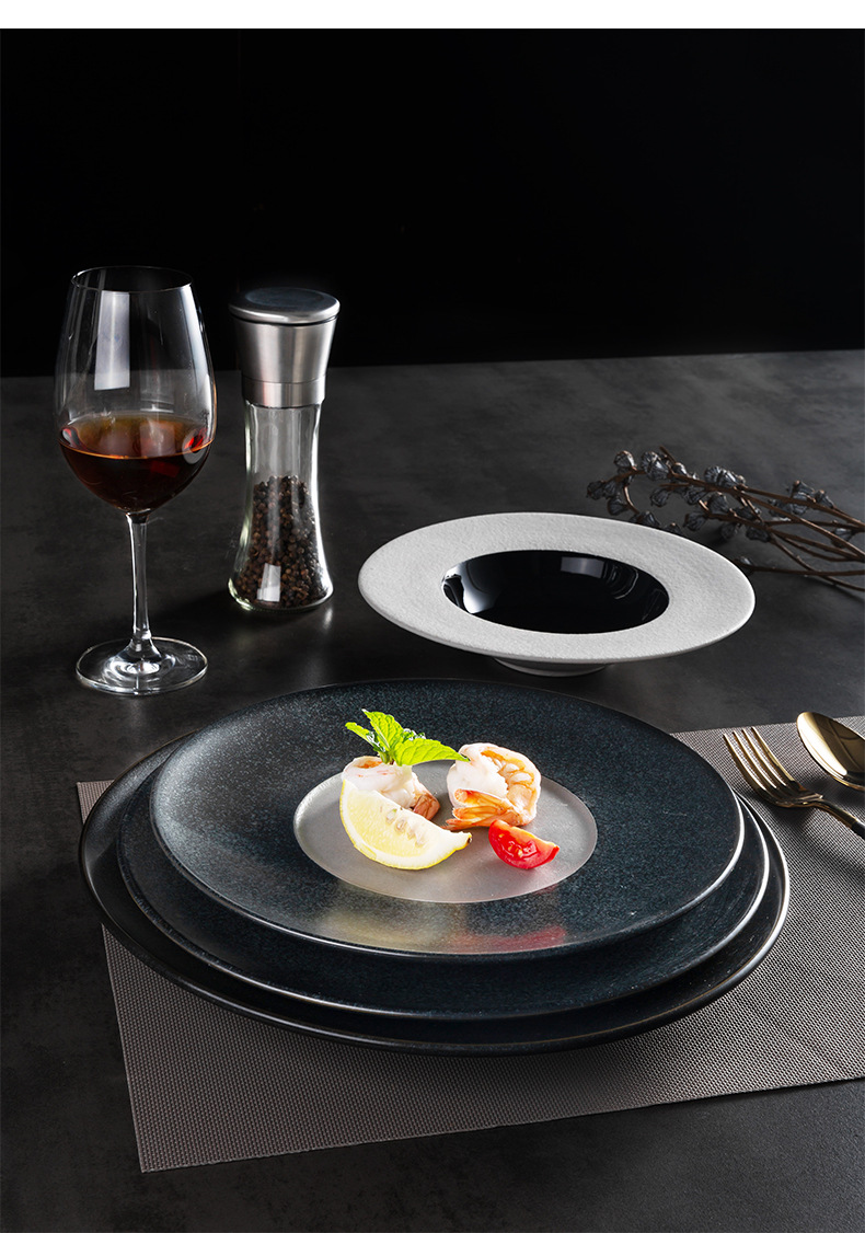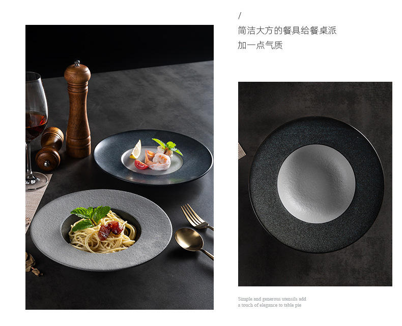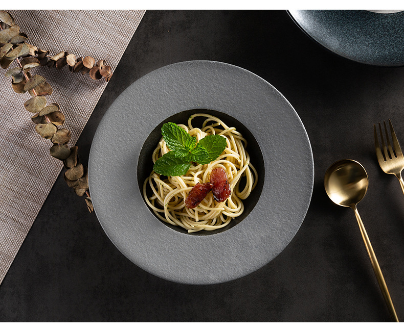 欧式ins陶瓷草帽盘哑光黑展示盘酒店餐具浓汤盘西餐厅沙拉意面盘 English | 投诉