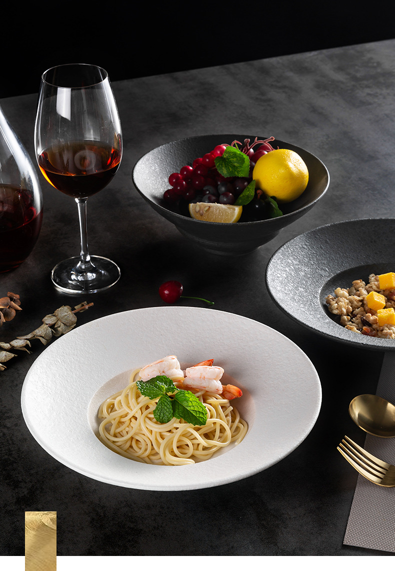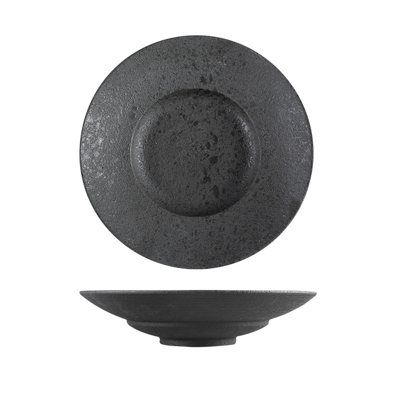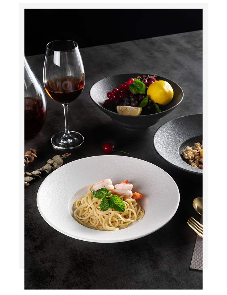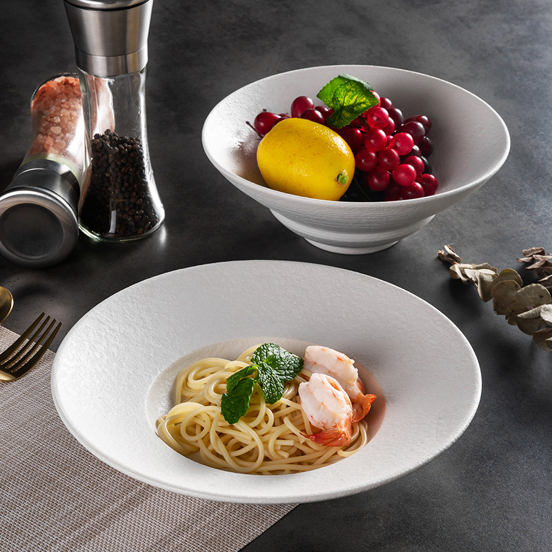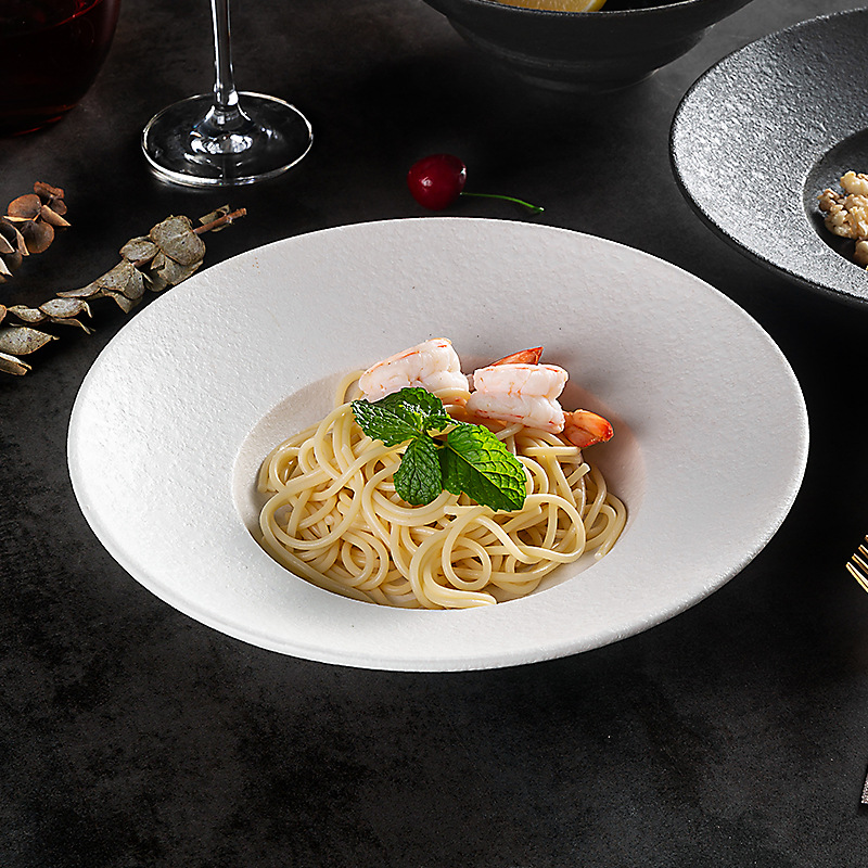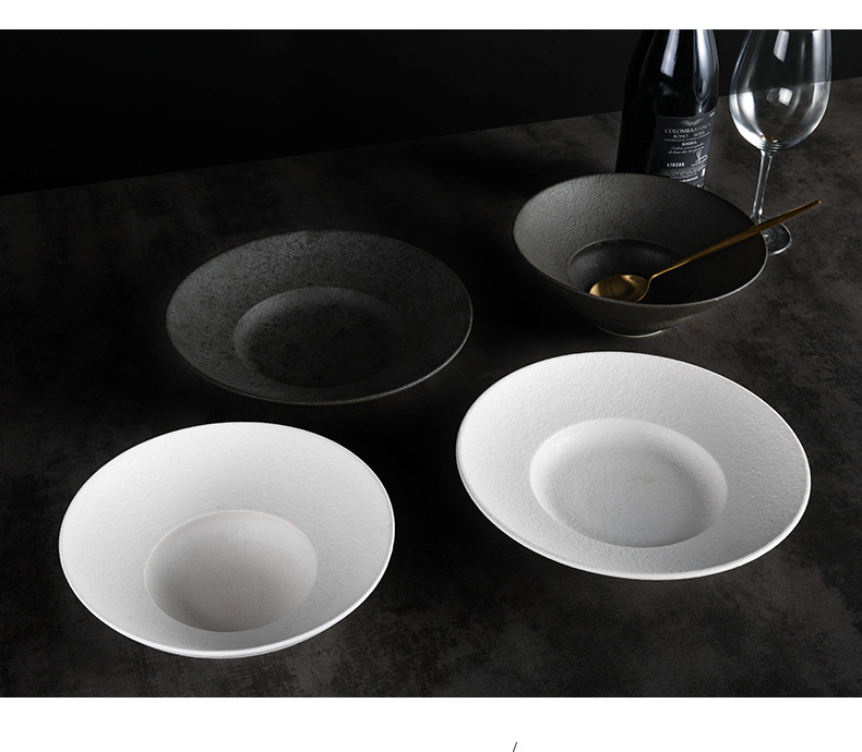 北欧陶瓷圆形草帽盘粗釉拉面汤碗西餐厅意面盘酒店创意斜边沙拉碗