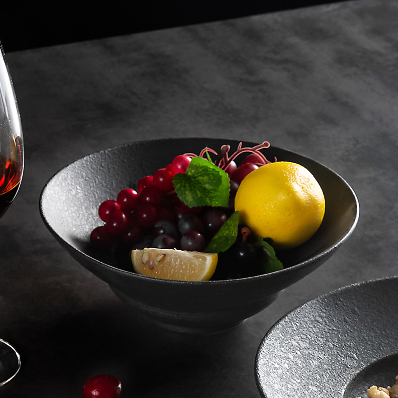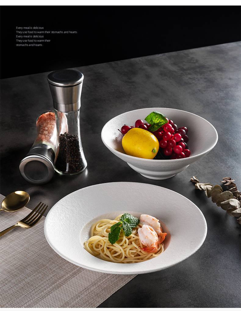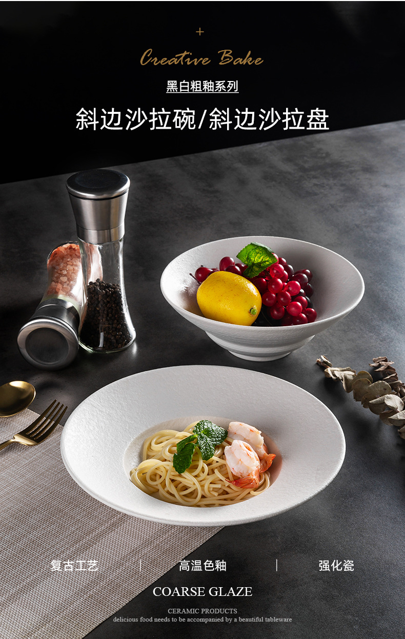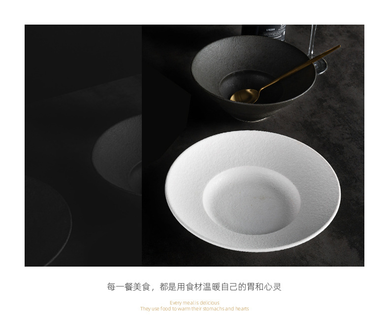 北欧陶瓷圆形草帽盘粗釉拉面汤碗西餐厅意面盘酒店创意斜边沙拉碗 English | 投诉