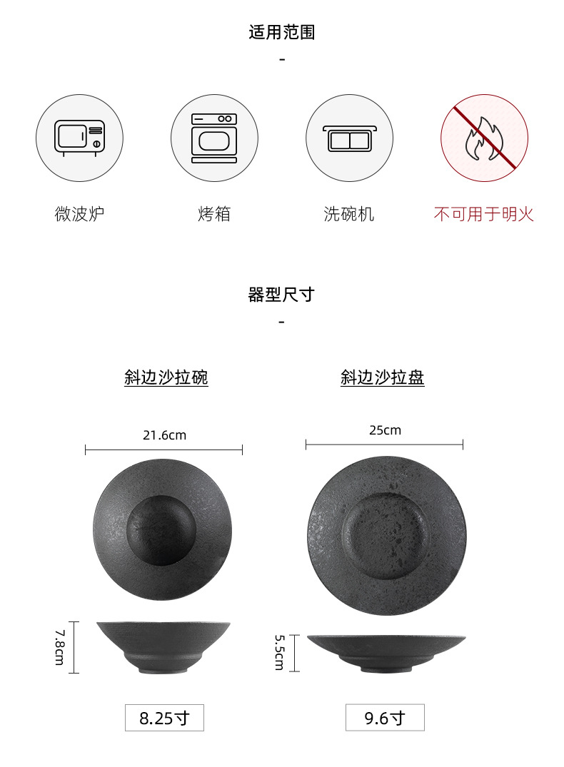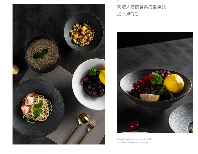 品牌: 青圆陶瓷 是否进口: 否 产品类别: 碗、碟、盘套装 货号: 黑白粗釉系列001 材质: 强化瓷 适用人群: 成人 图案: 纯色 风格: 日式风 形状: 圆形 微波炉: 可用