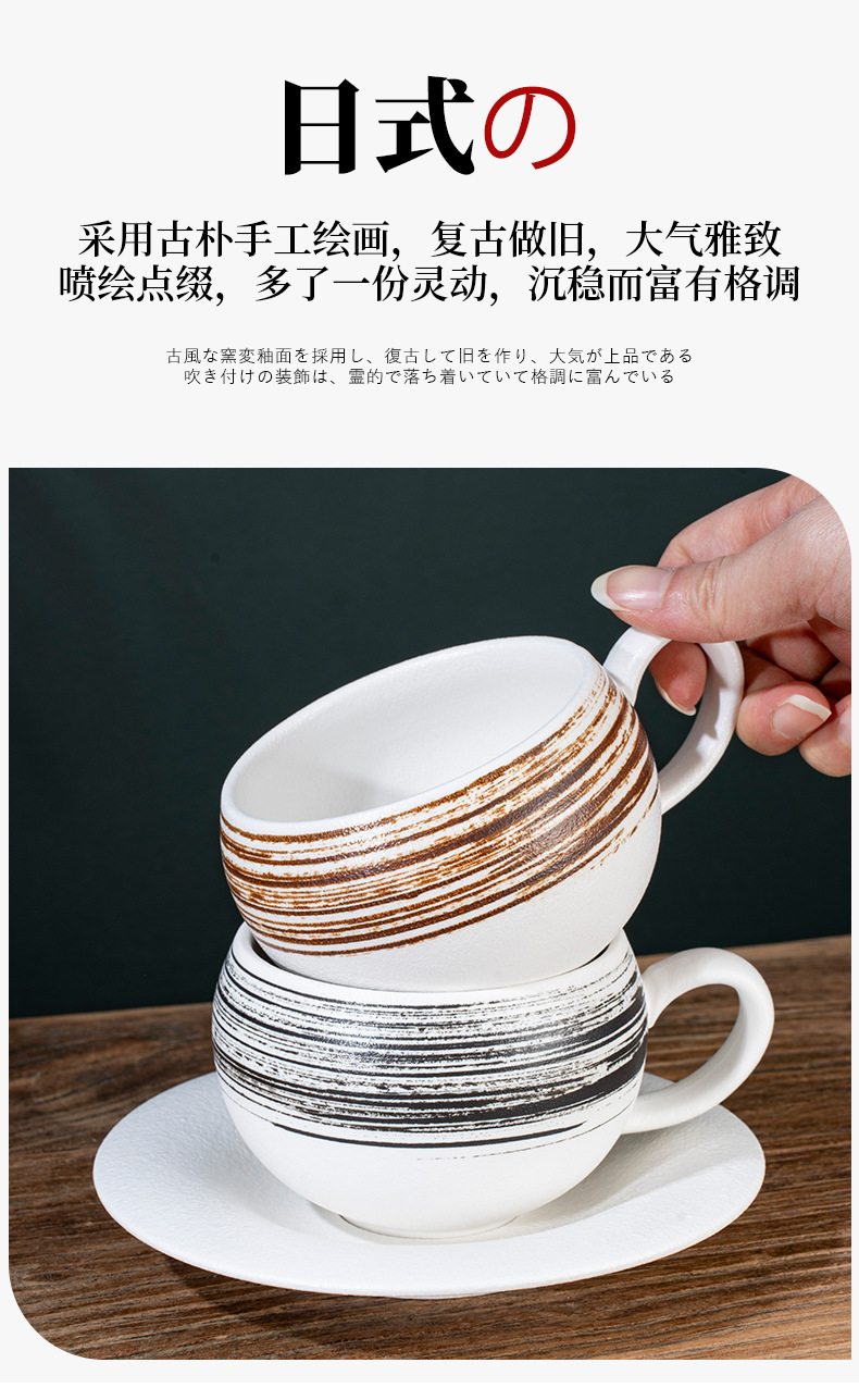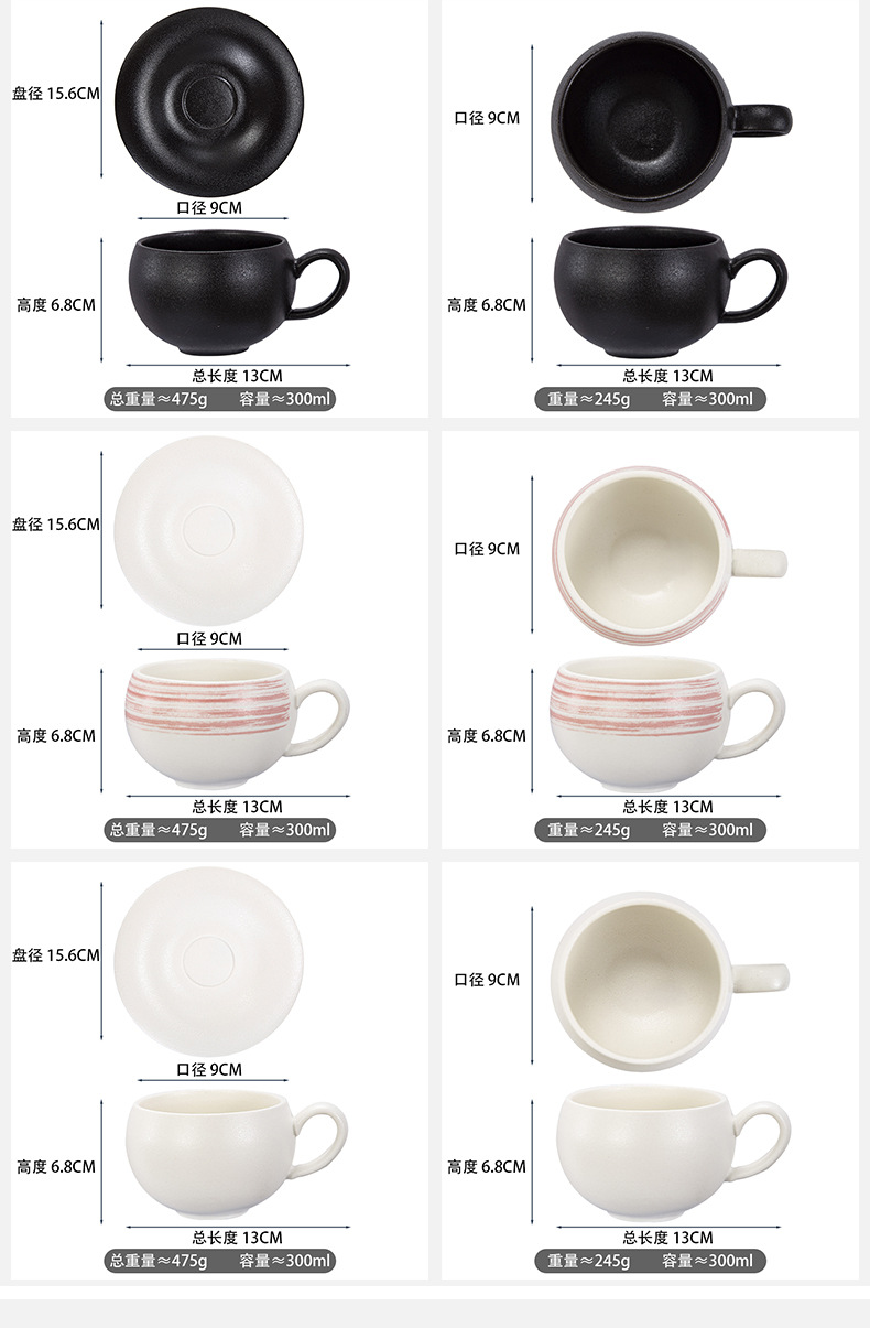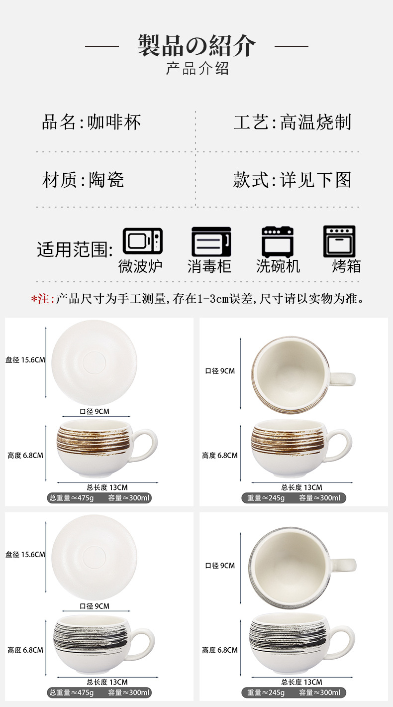 材质: 陶瓷 产品类别: 咖啡杯 是否进口: 否 风格: 日式 加印LOGO: 可以 适用对象: 通用 图案: 其他 微波炉: 可用 适用人群: 通用 适用送礼对象: 女士,男士,儿童,情侣,学生,同事,朋友