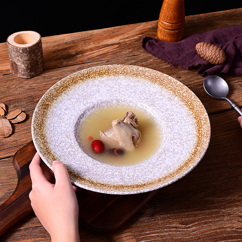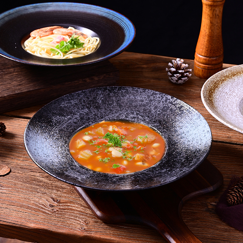 草帽盘意面盘西餐盘子日式盘子复古外贸陶瓷餐具沙拉盘碟子甜品盘 English | 投诉