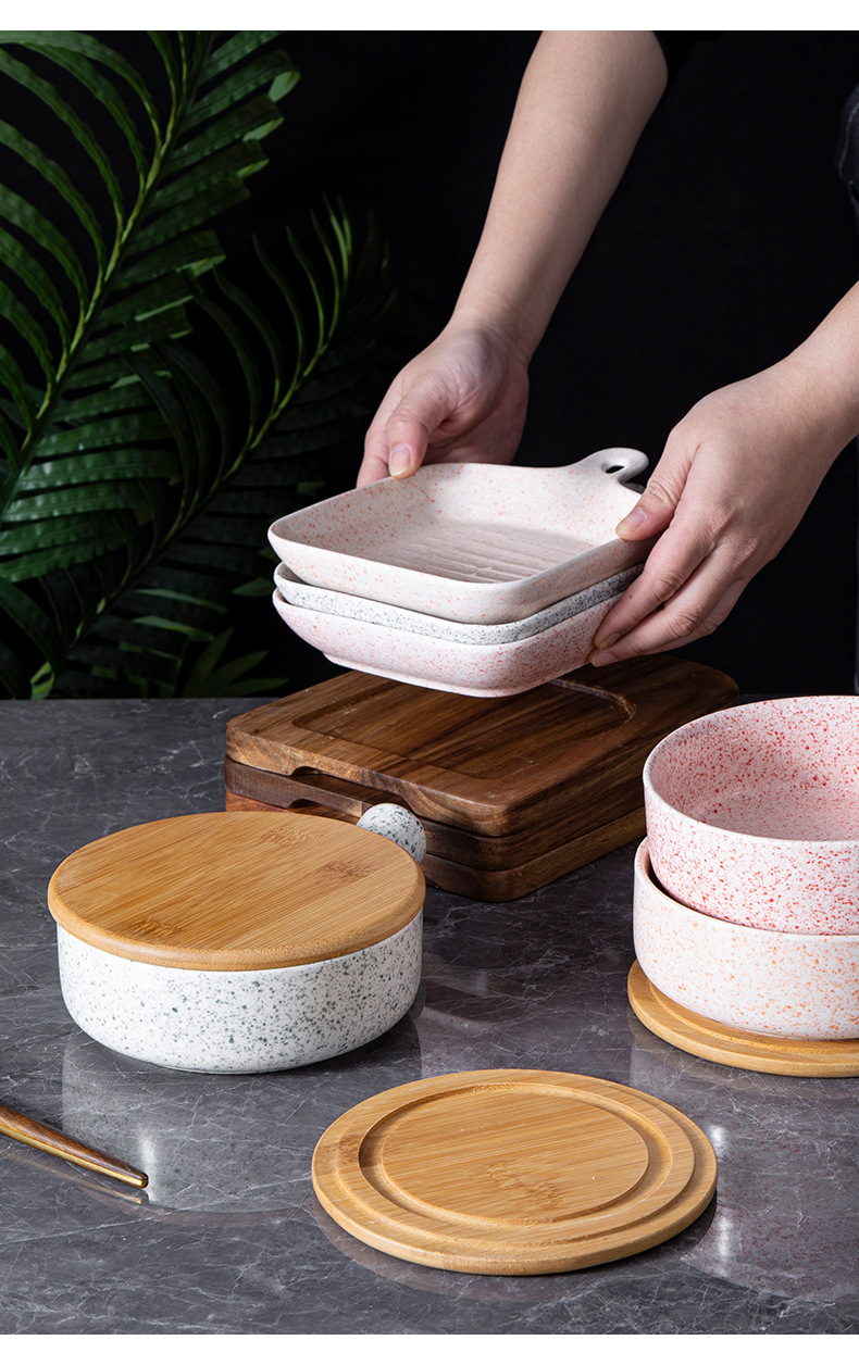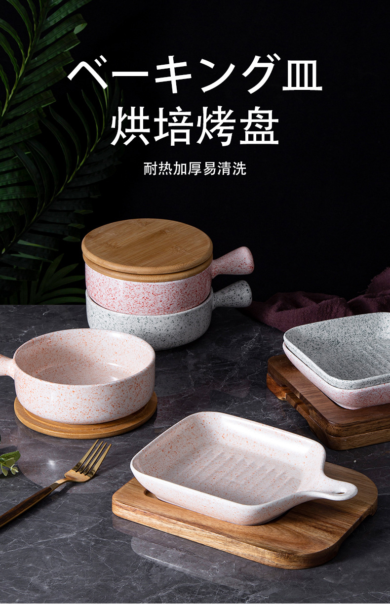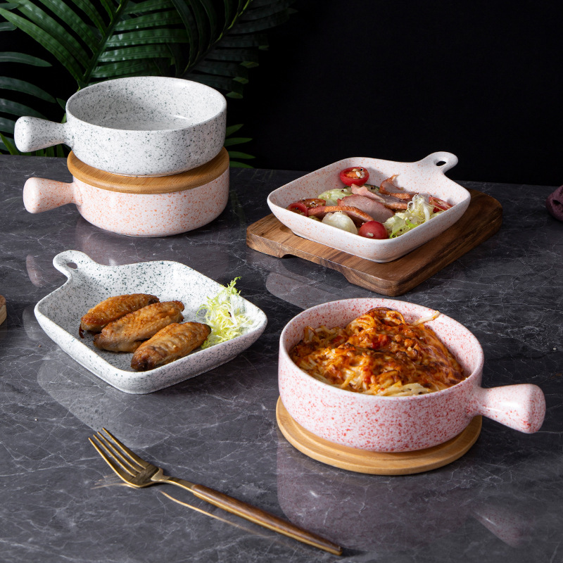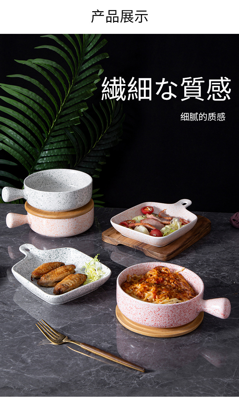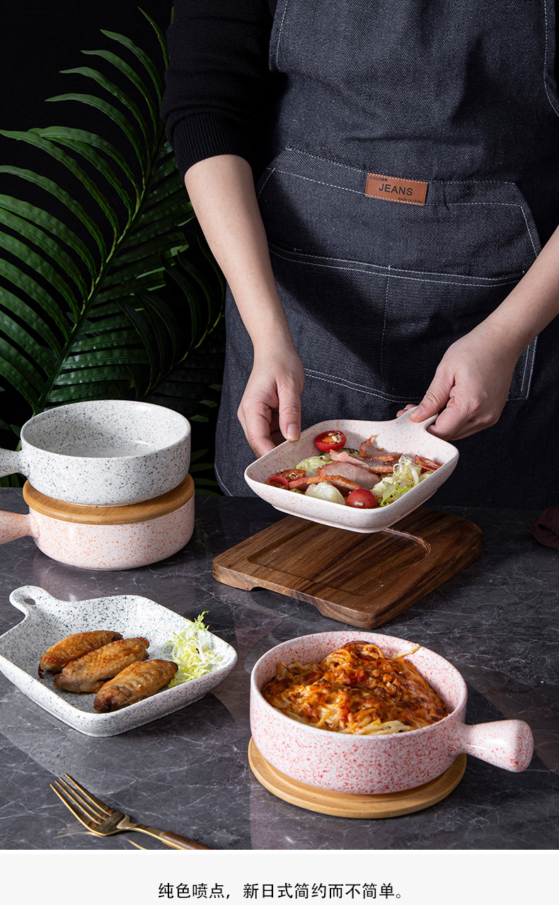 日式套装手柄碗手柄盘沙拉碗甜点盘创意陶瓷碗批发焗饭碗泡面碗 English | 投诉