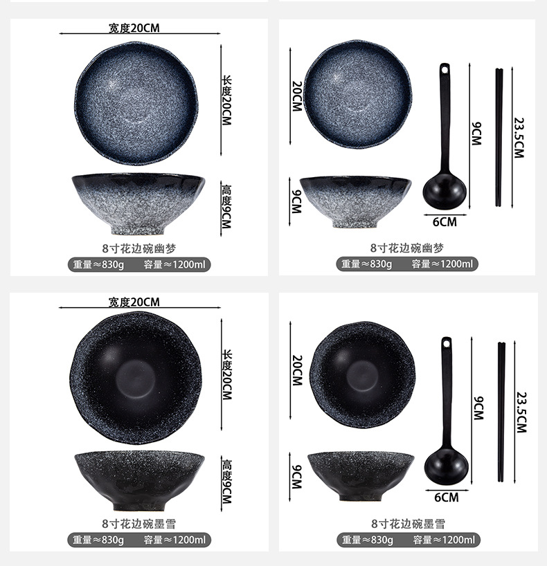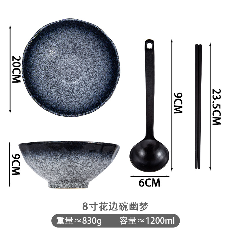 跨境陶瓷餐具花边碗拉面碗泡面碗创意学生宿舍泡面碗沙拉碗大汤碗 English | 投诉
