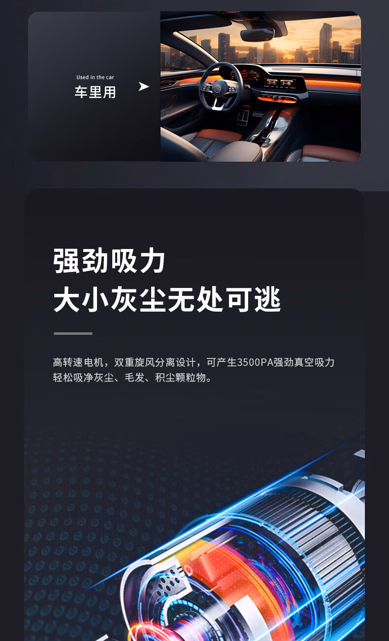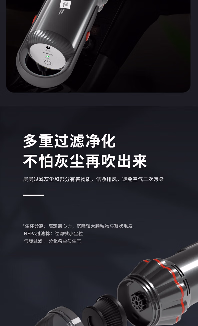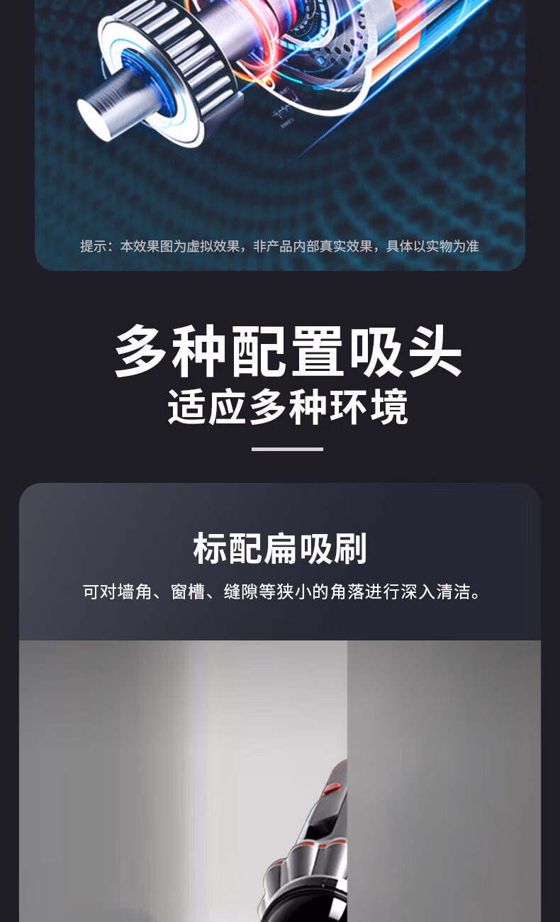 配件:尘杯罩x1、椭圆刷x1、扁吸x1、USB充电线x1