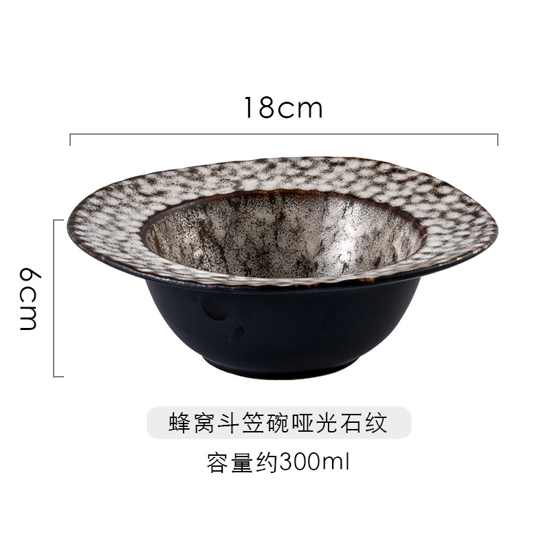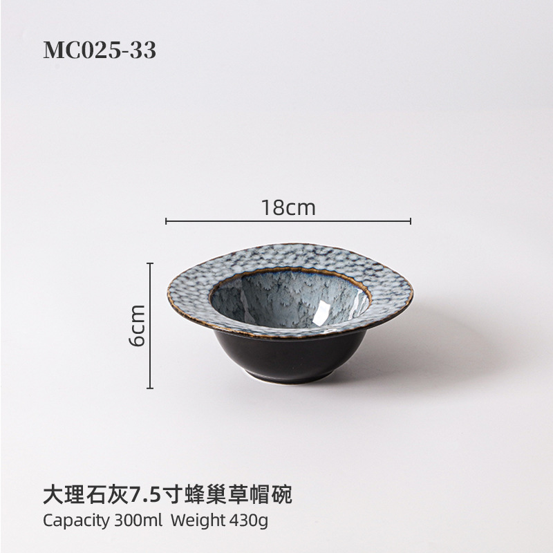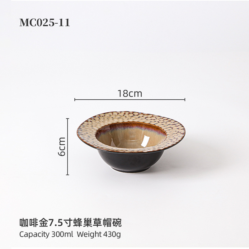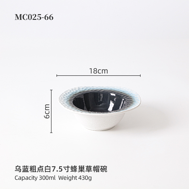 品牌: 名驰陶瓷 货号: 7.5寸蜂窝草帽碗 产品类别: 窑变 材质: 瓷 是否进口: 否 适用人群: 通用 图案: 纯色 风格: 现代简约 形状: 不规则形 微波炉: 可用