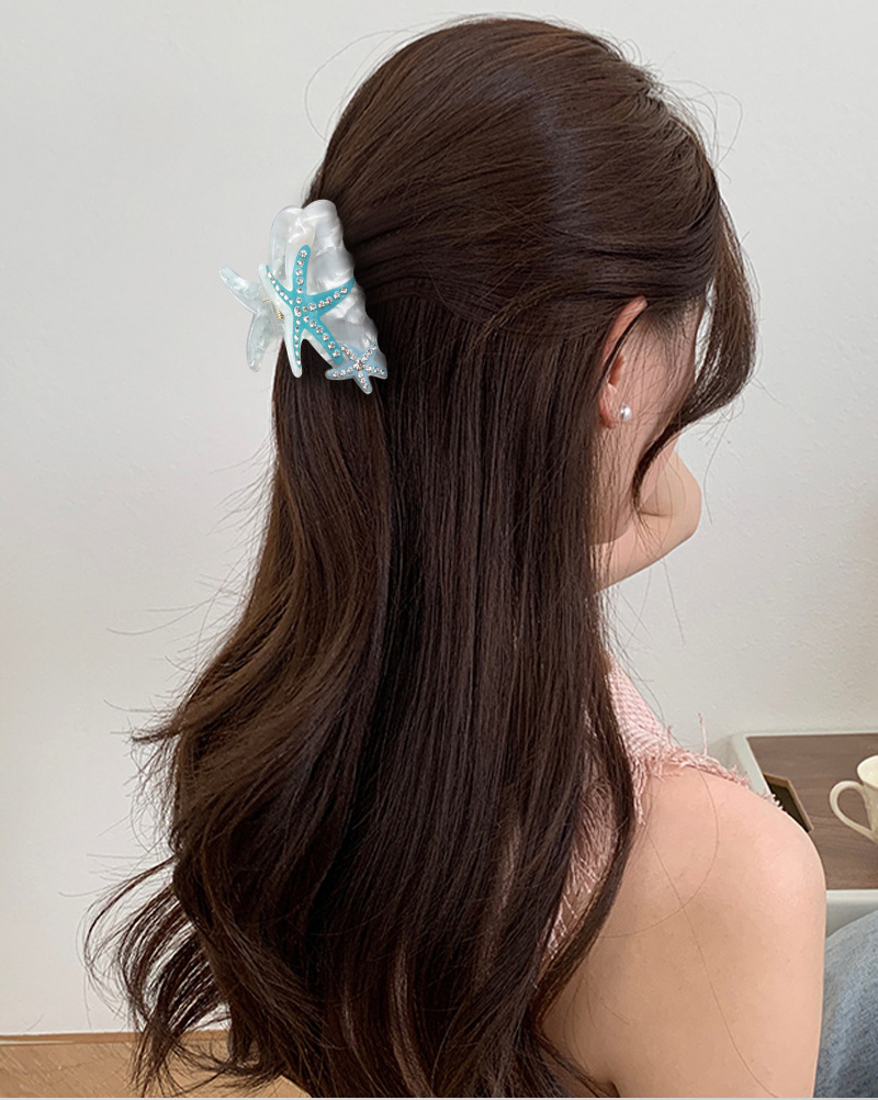 宝光喷绘海星带钻花色抓夹女生鲨鱼夹头发抓气质复古PVC发卡头饰