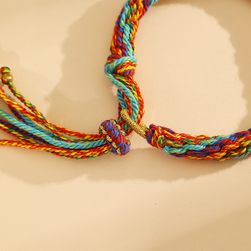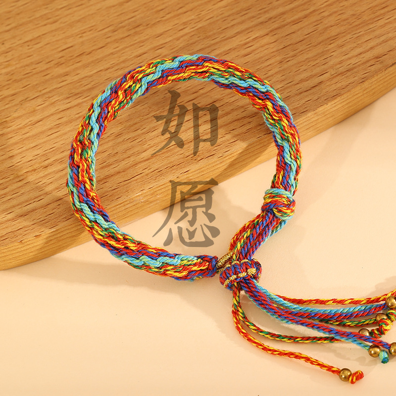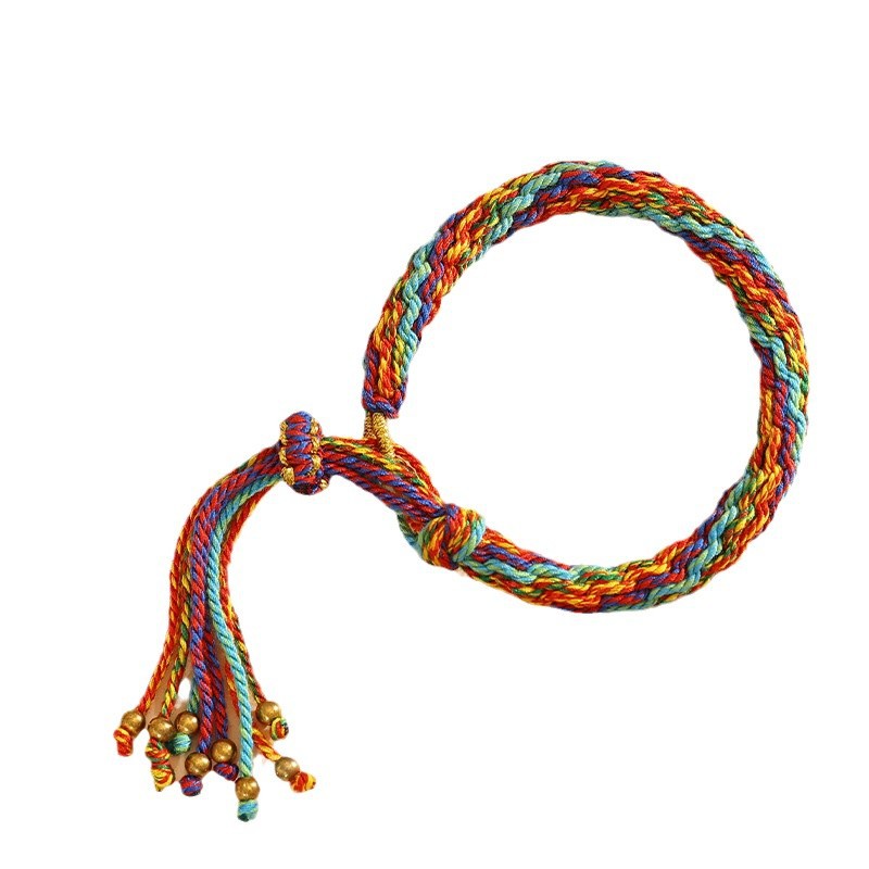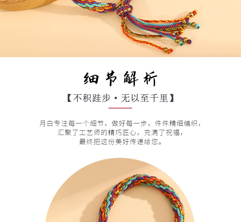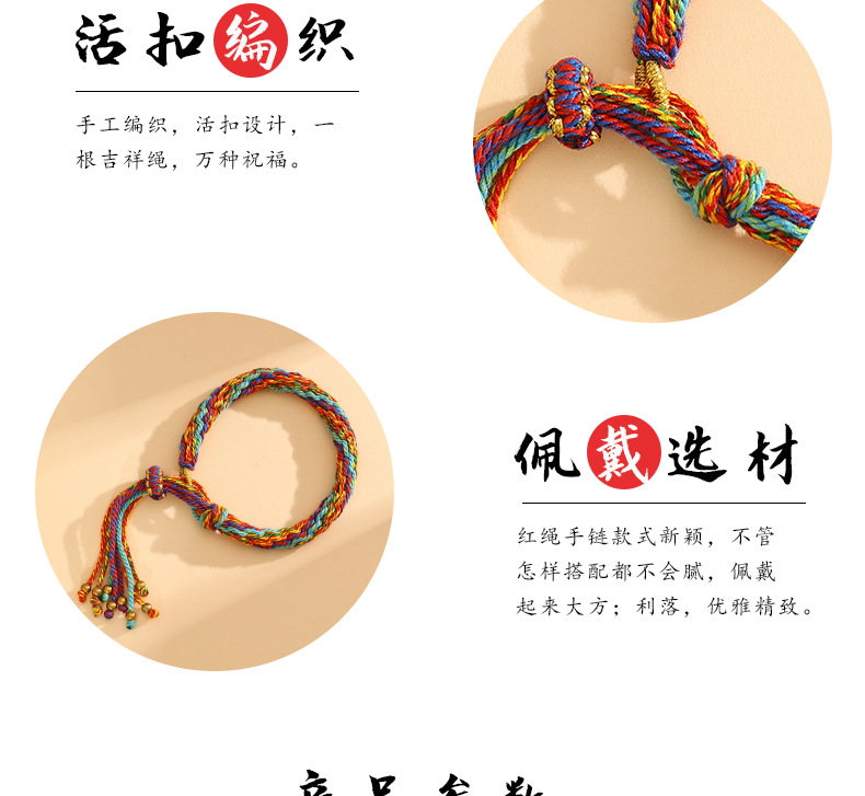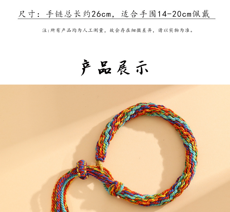 藏式轮回手绳手工编织民族风五彩绳手链可挂唐卡手搓棉线手绳批发 投诉