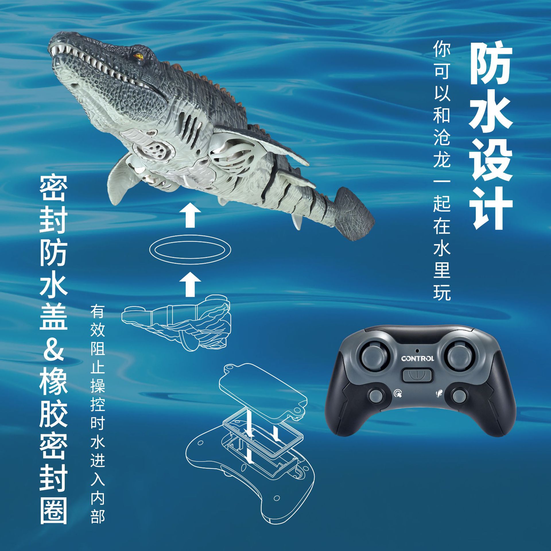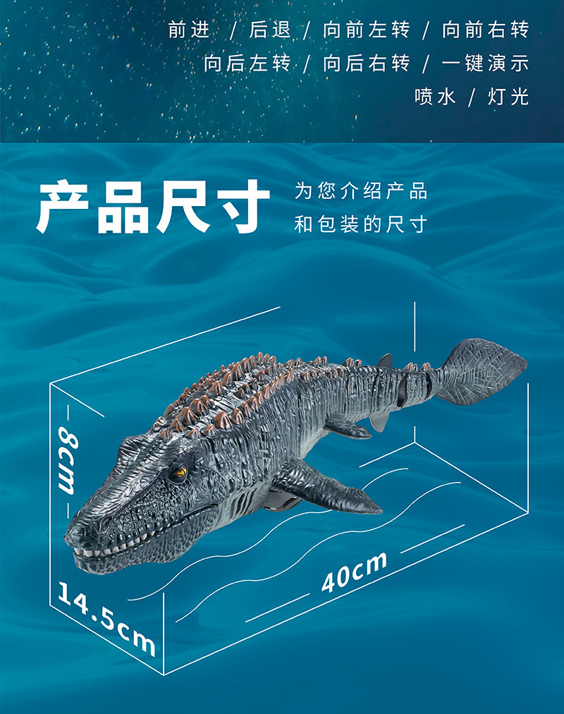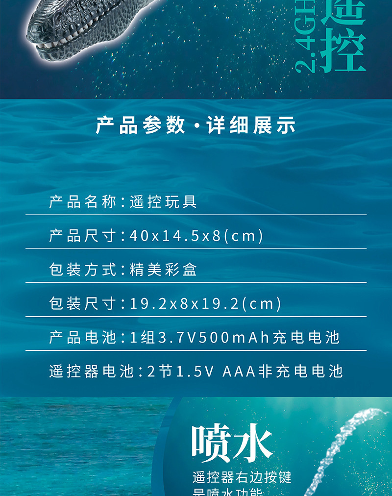 产品功能:漂浮水面,可通过遥控实现前进后,左右转向,头顶喷水,自动演示等功能