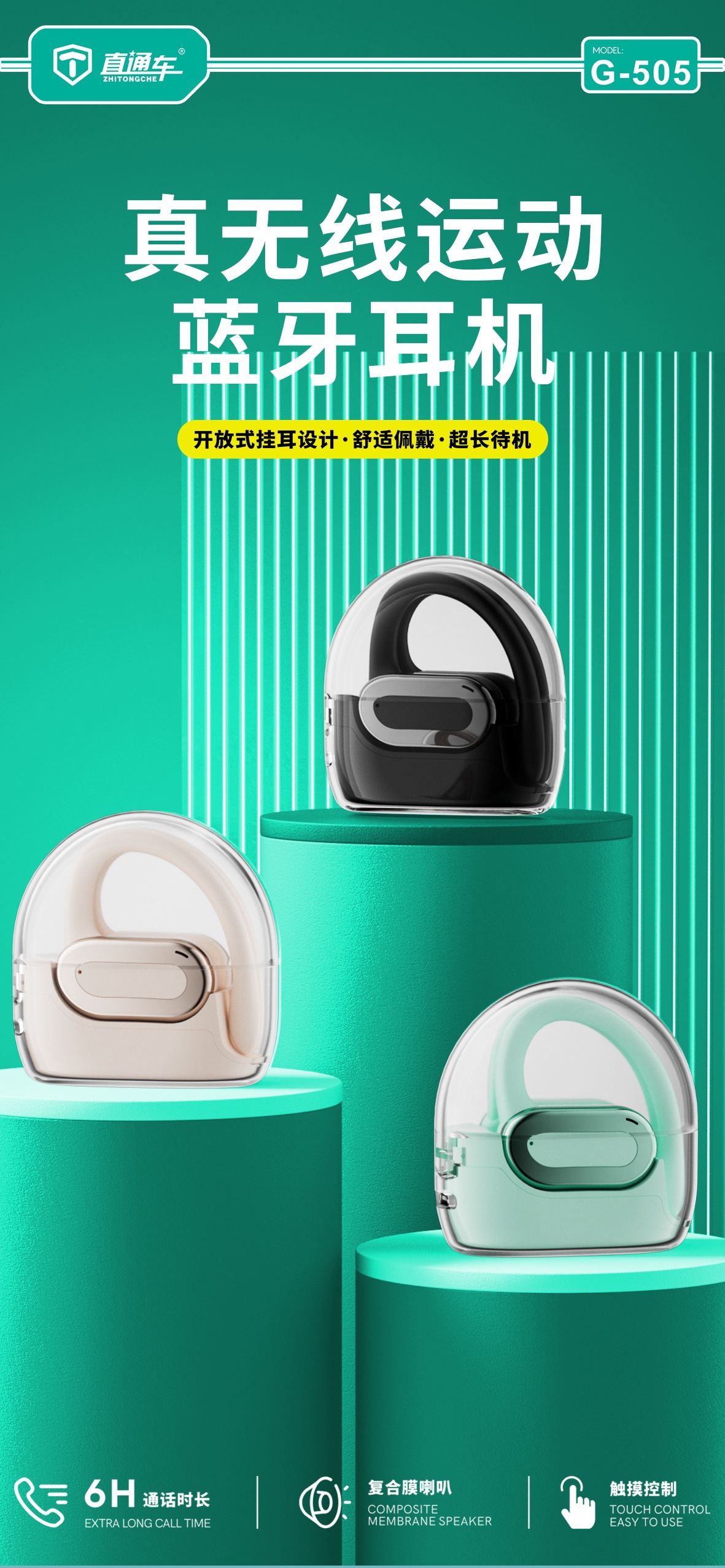 耳挂式OWS,真硅胶材质,柔软舒适,久戴不痛。