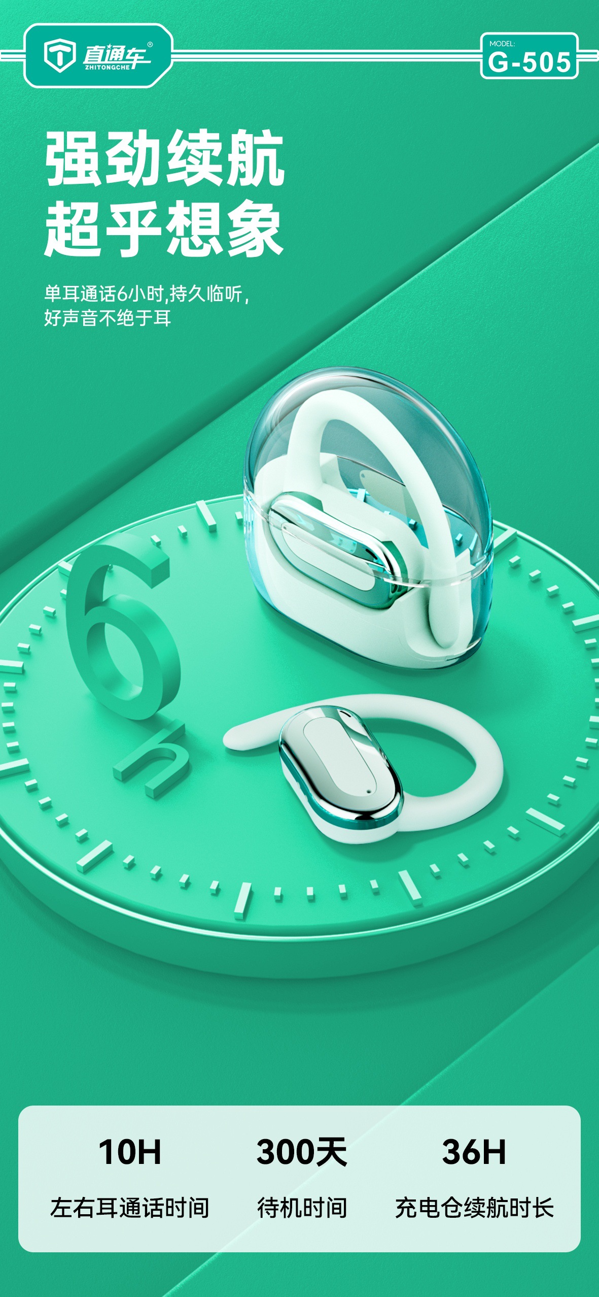 超长续航单次使用最高可达约5-7小时使用时间,双耳交替循环充电使用可达约50小时。
