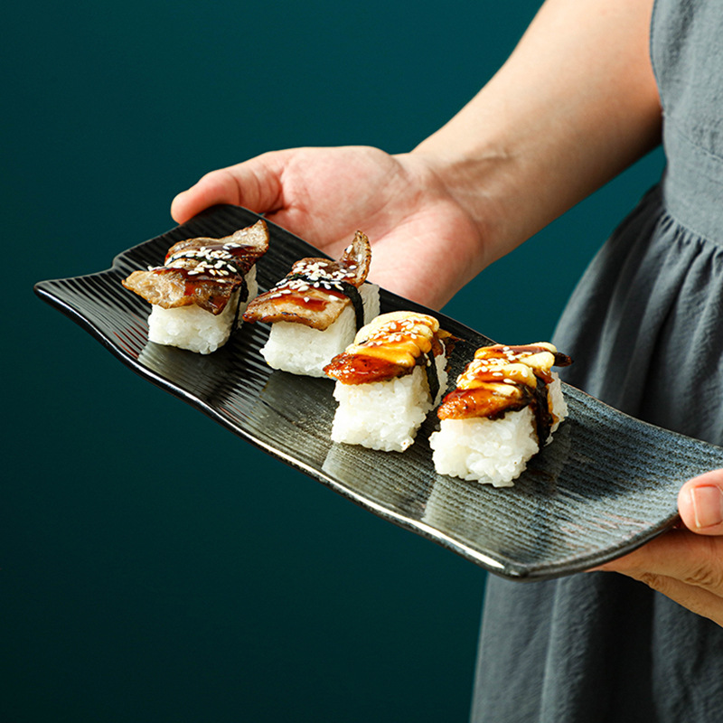 10寸日式料理寿司盘子陶瓷长方形异形盘酒店餐厅创意复古刺身餐具 English | 投诉