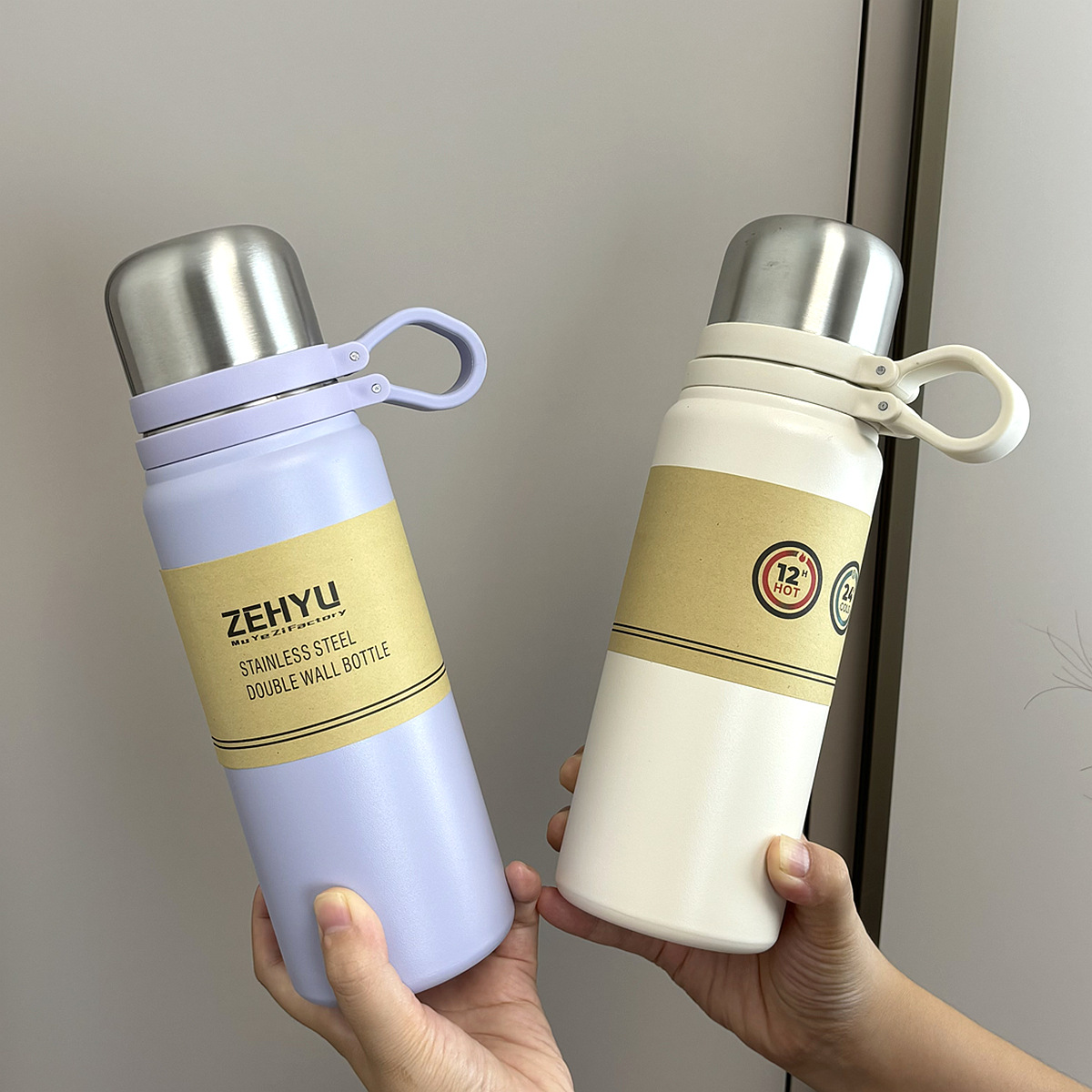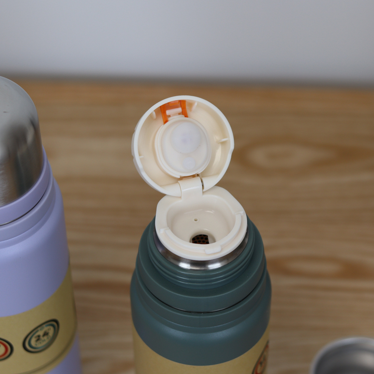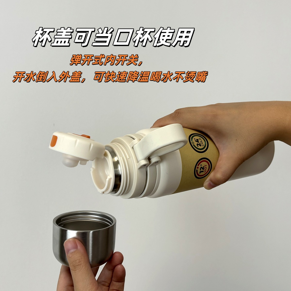 这是一款高端的保温杯,内开关一键开盖,搭 配全钢外盖,