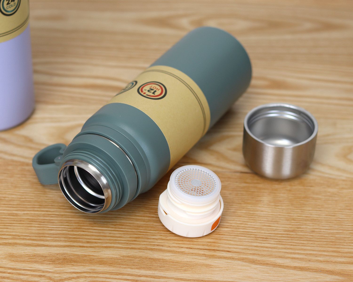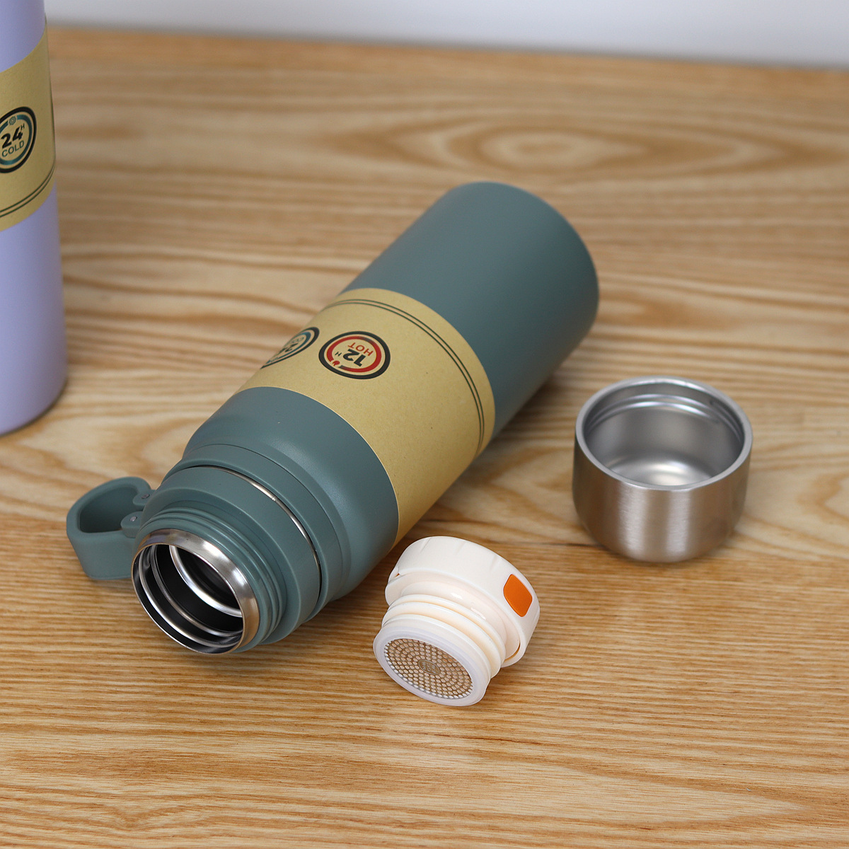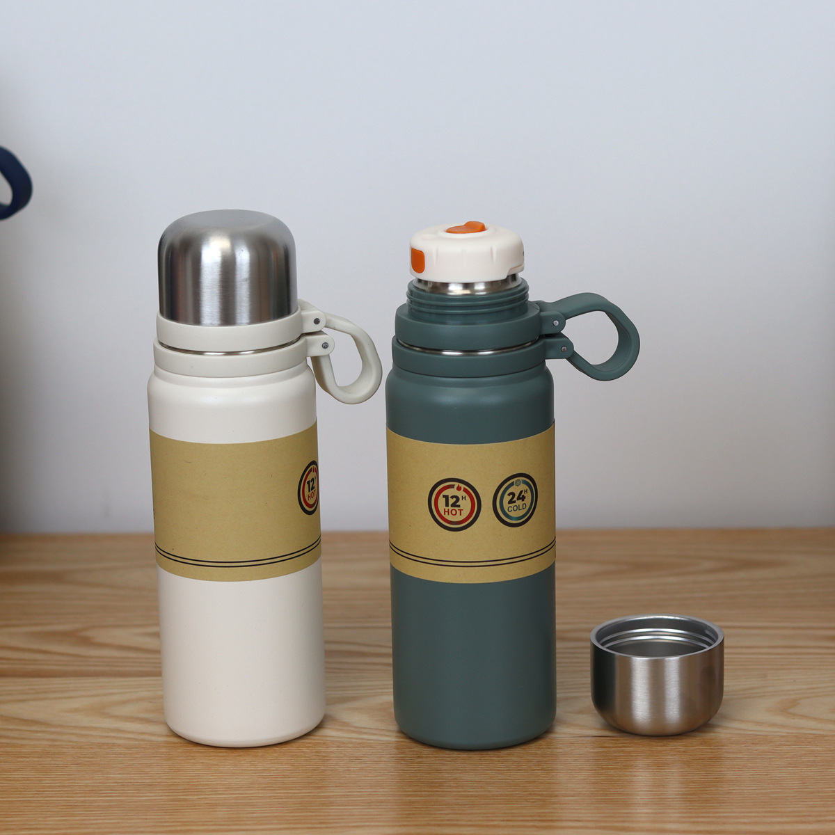 这是一款高端的保温杯,内开关一键开盖,搭 配全钢外盖,