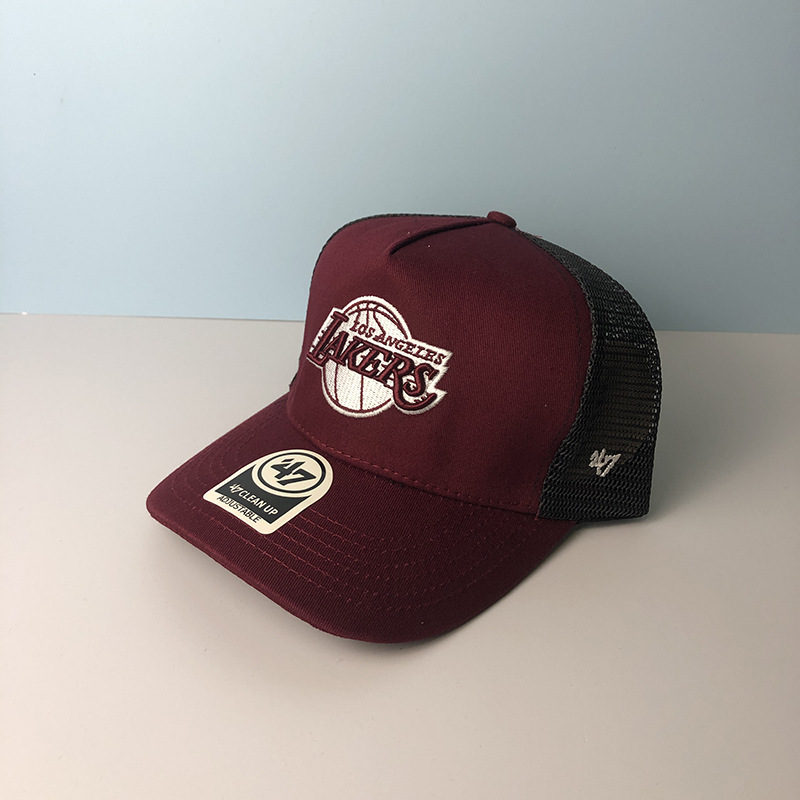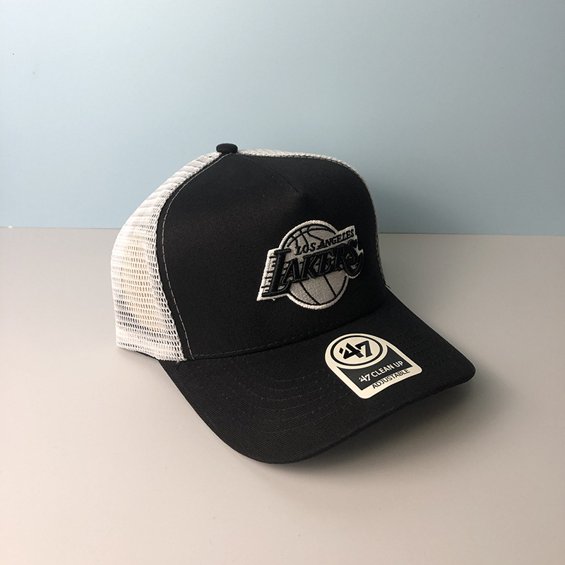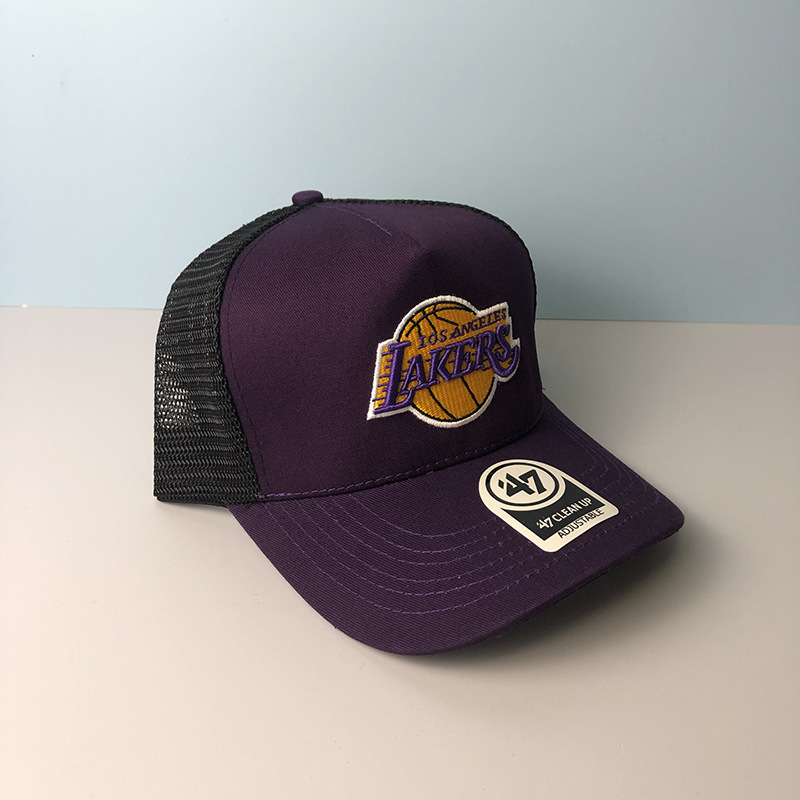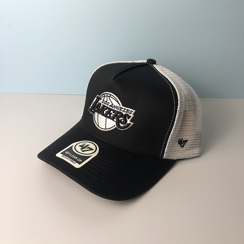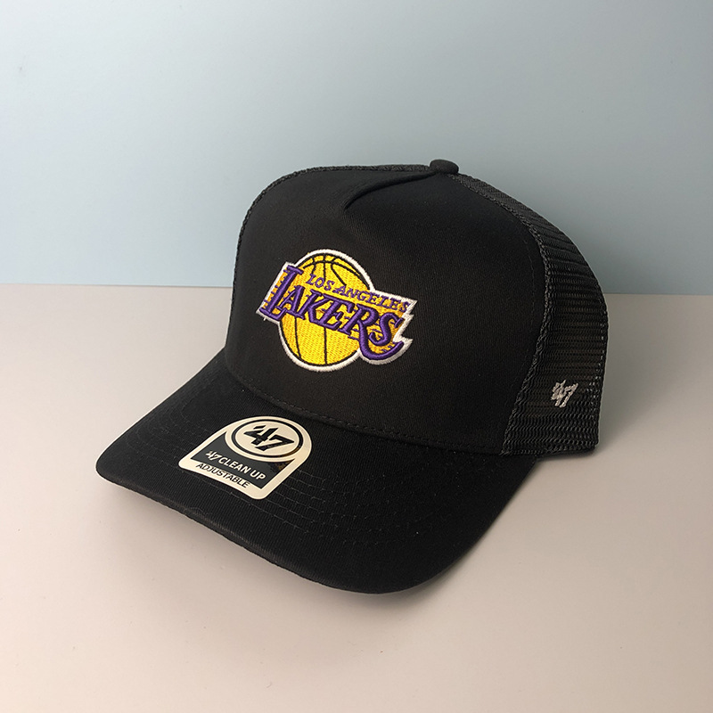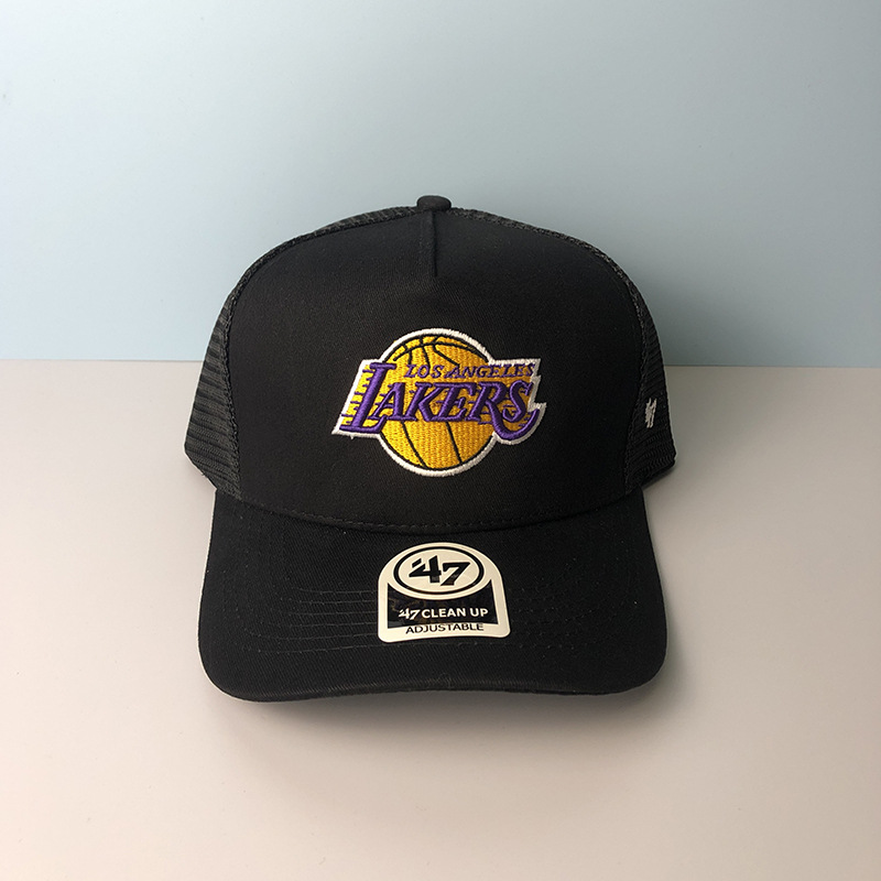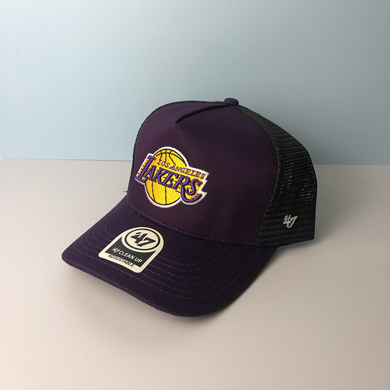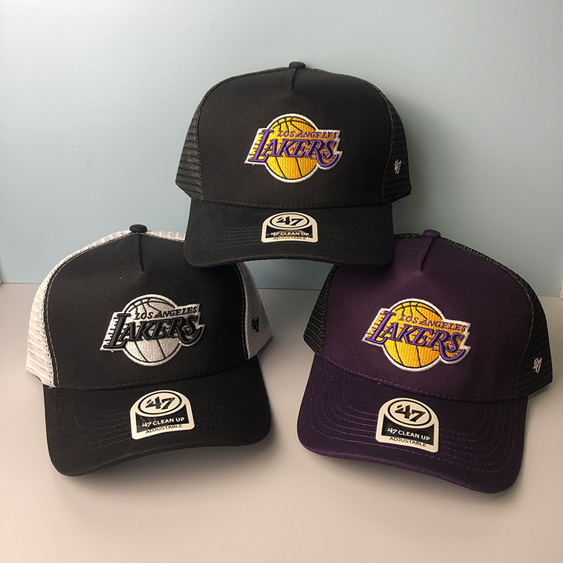 篮球湖人队棒球帽男47brand鸭舌帽女夏季遮阳防晒透气网眼帽子