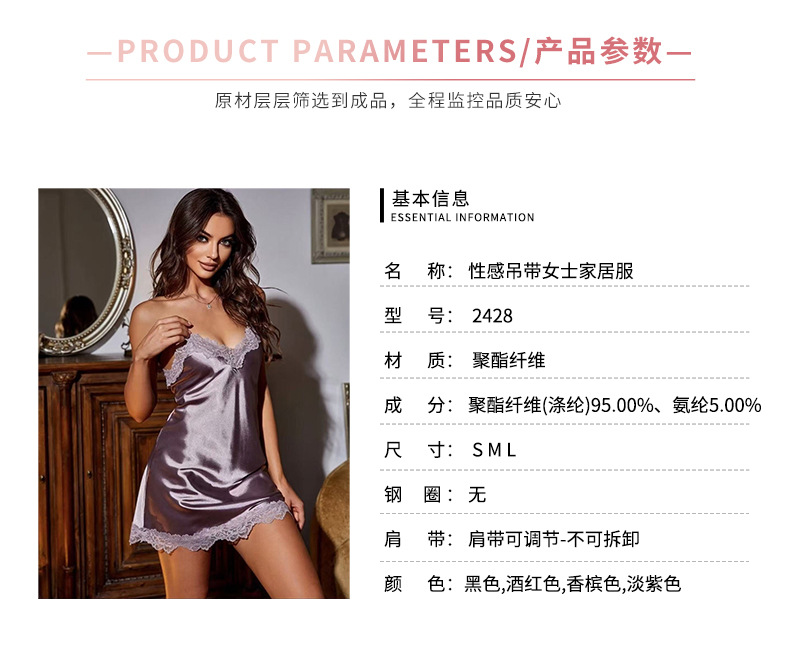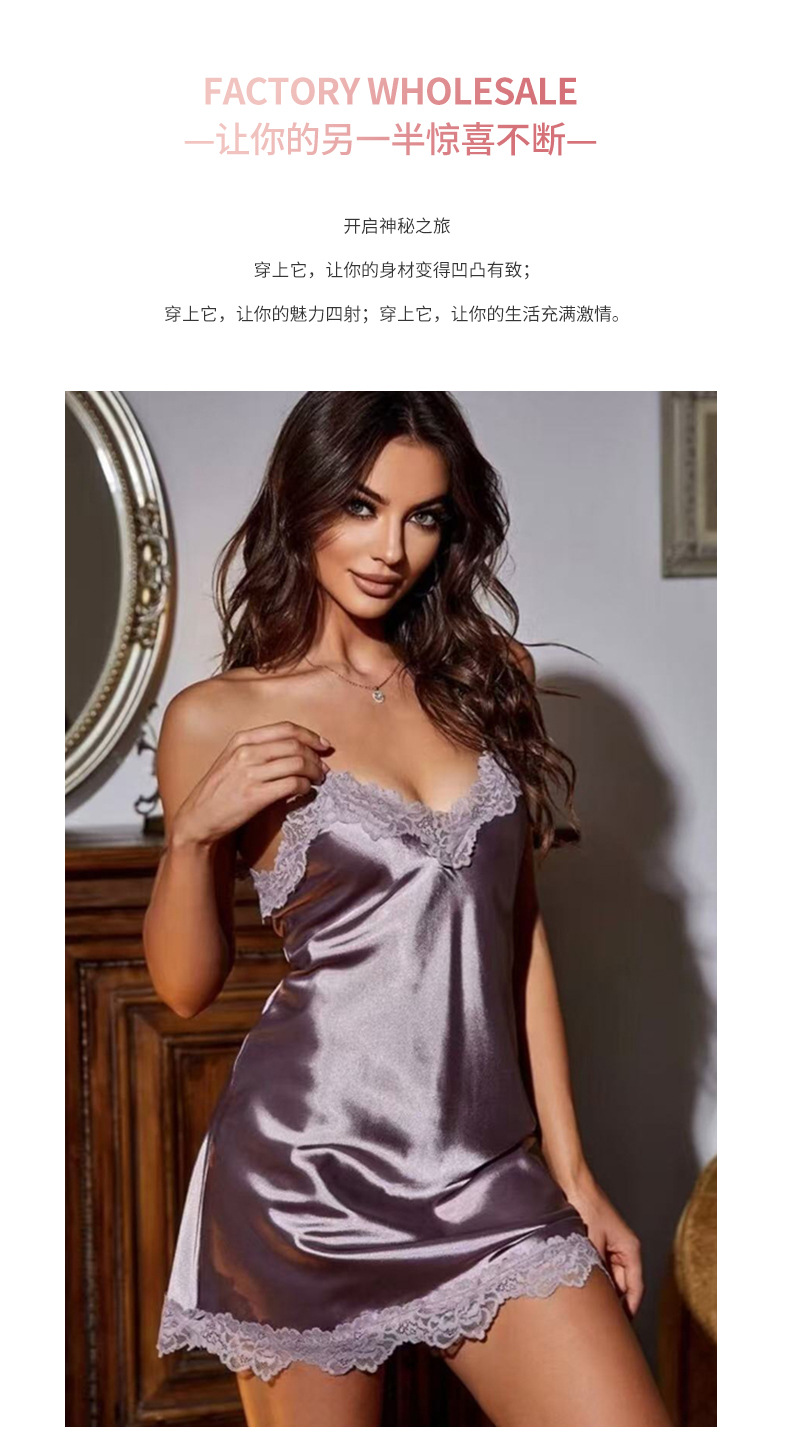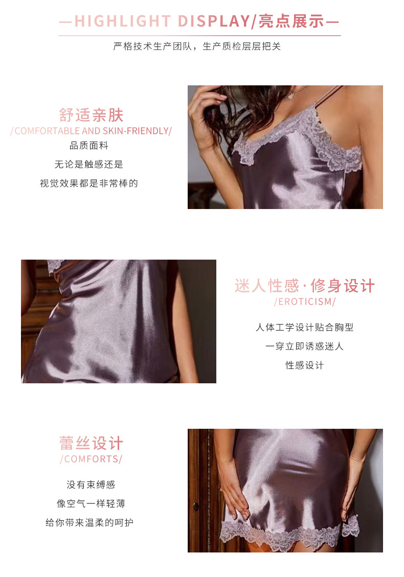 欧美新款跨境女士蕾丝花边薄款情趣睡裙性感纯欲吊带裙家居服 English | 投诉