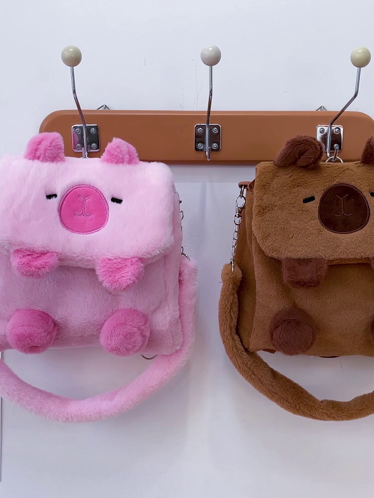 批发新款儿童毛绒玩偶单肩包卡通可爱翻盖斜挎双背三用多功能包包