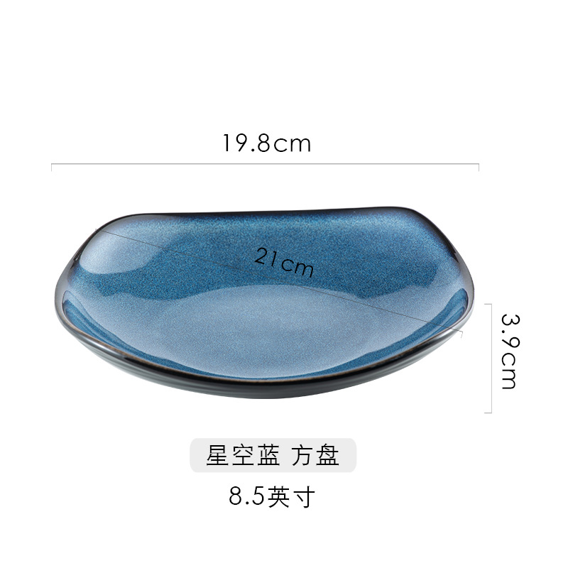品牌: 名驰陶瓷 货号: 8寸方盘 产品类别: 窑变 材质: 瓷 是否进口: 否 全国工业生产许可证编号: - 适用人群: 通用 图案: 纯色 风格: 日韩 形状: 方形
