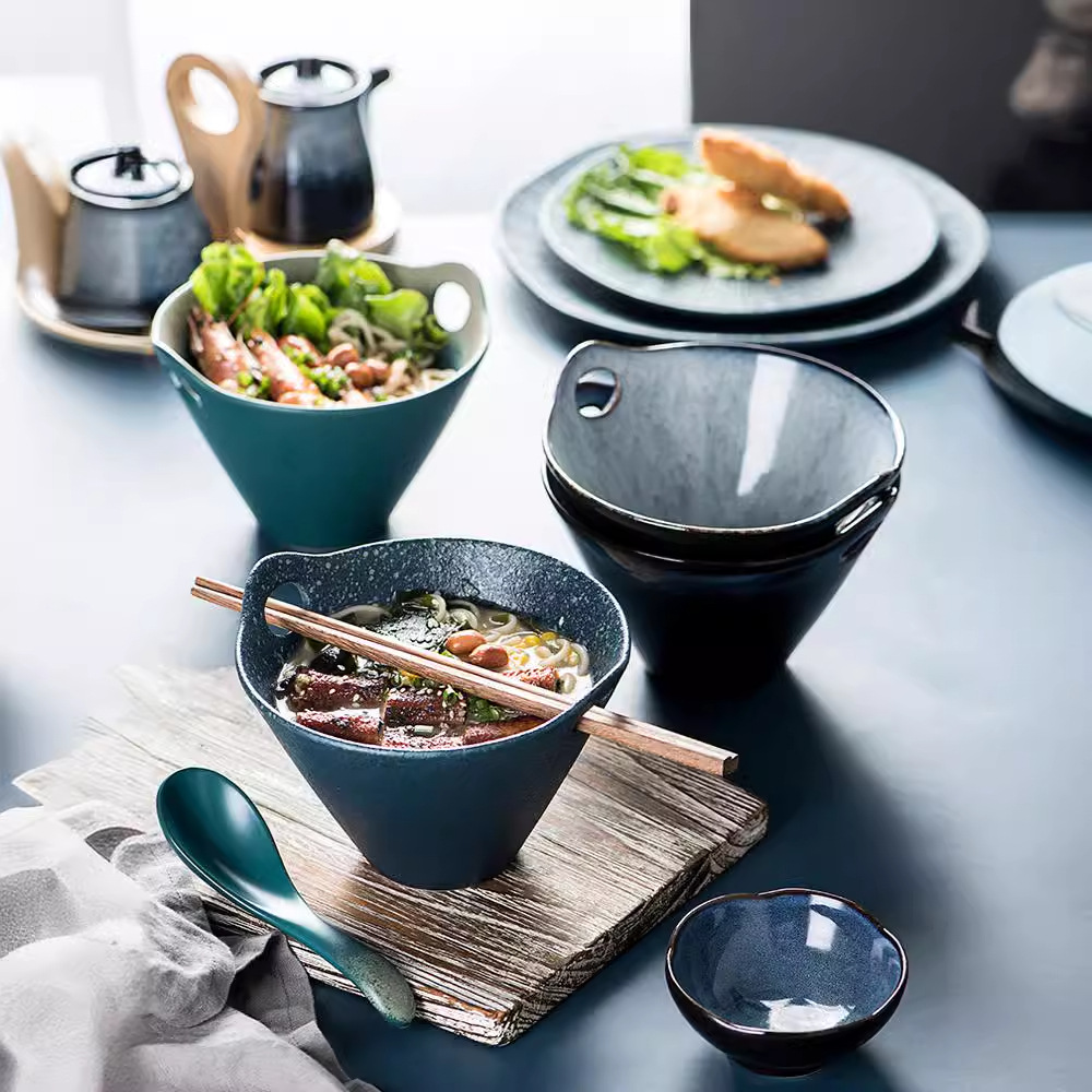日式陶瓷创意双耳汤面喇叭碗 家用个性餐具拉面碗汤碗8寸 English | 投诉