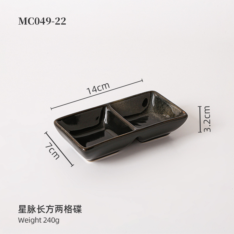 陶瓷两格长方蘸料碟 日式酱料调料碟子 火锅店餐具酱油碟调味碟 English | 投诉