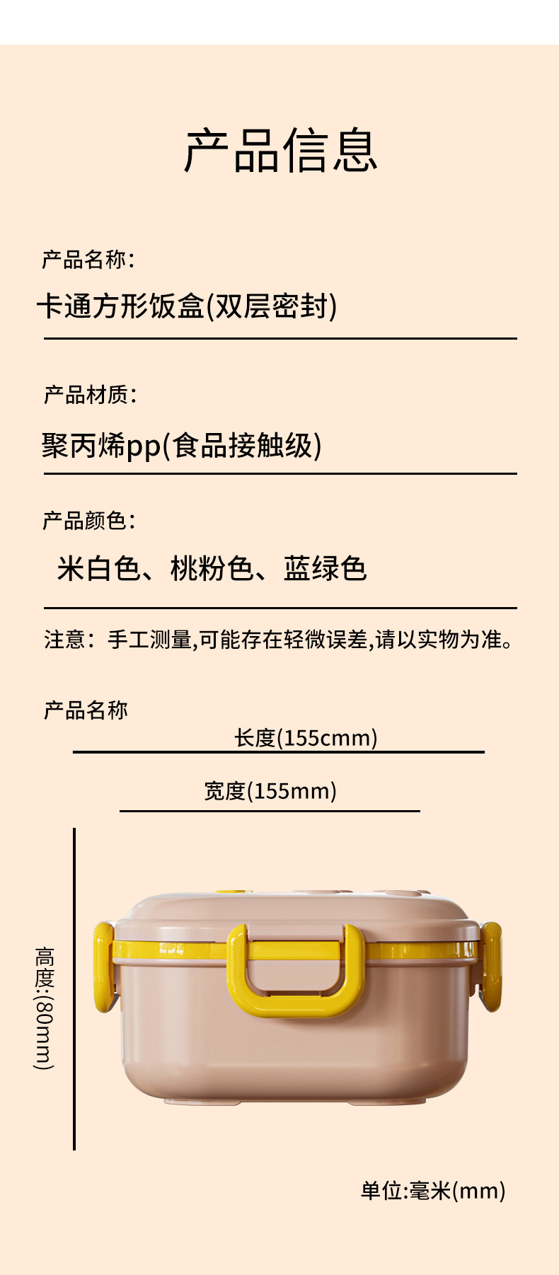 | 方形卡通饭盒【桃粉色】 | ¥0 | 99990个可售 |