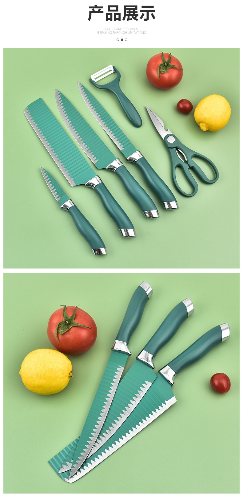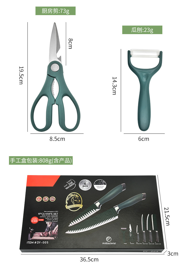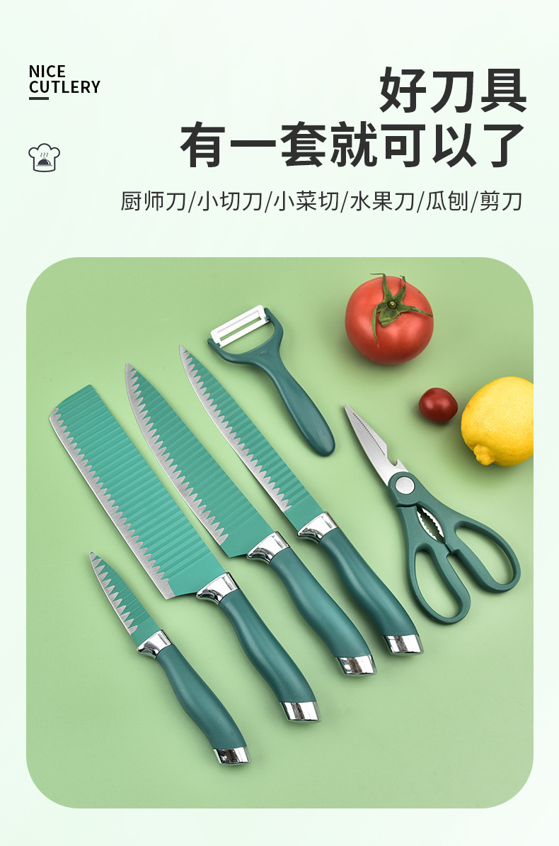 双电镀头六件套家用厨房不锈钢刀具套装彩色礼品盒装套刀厂家批发 English | 投诉