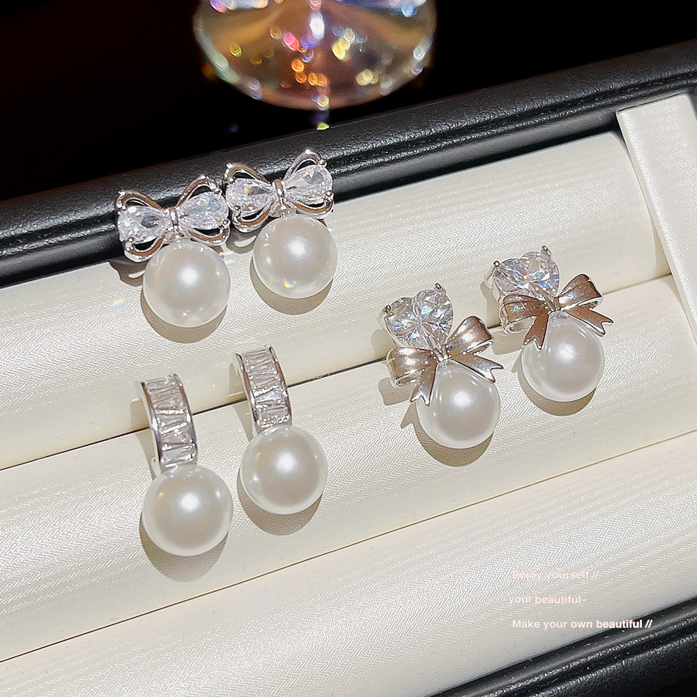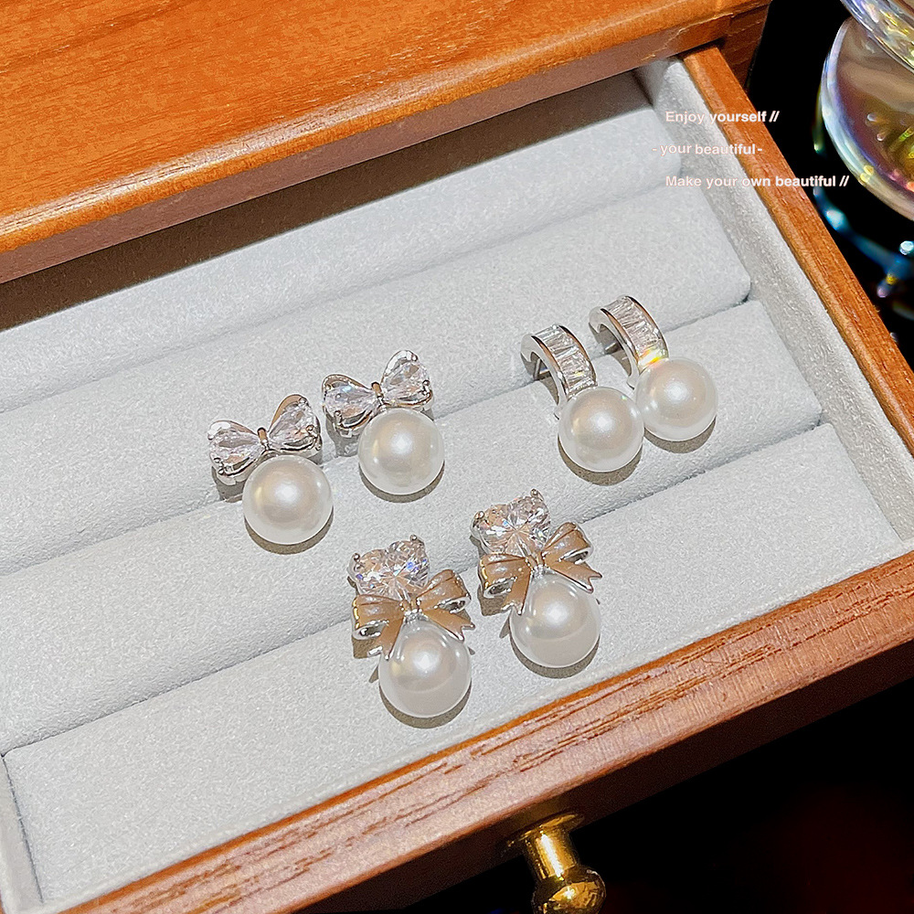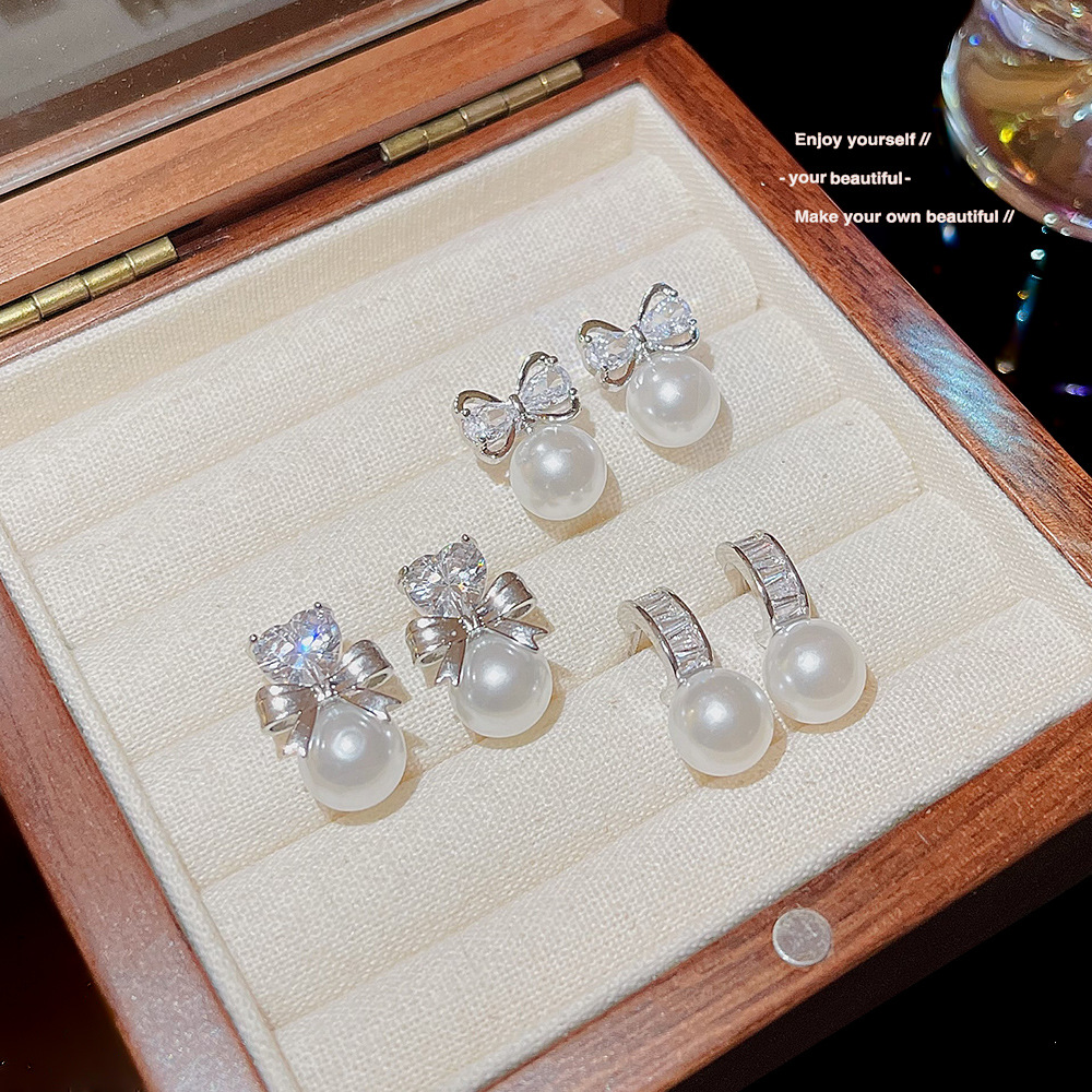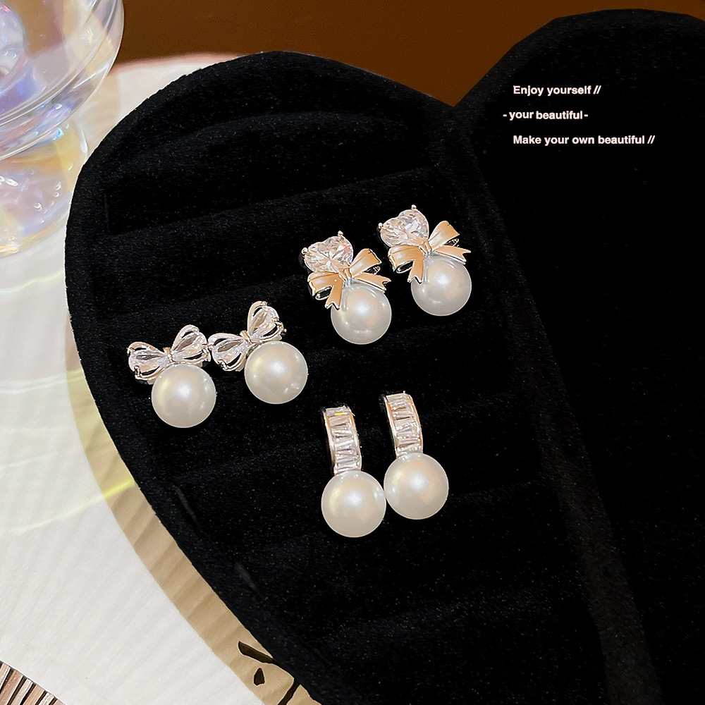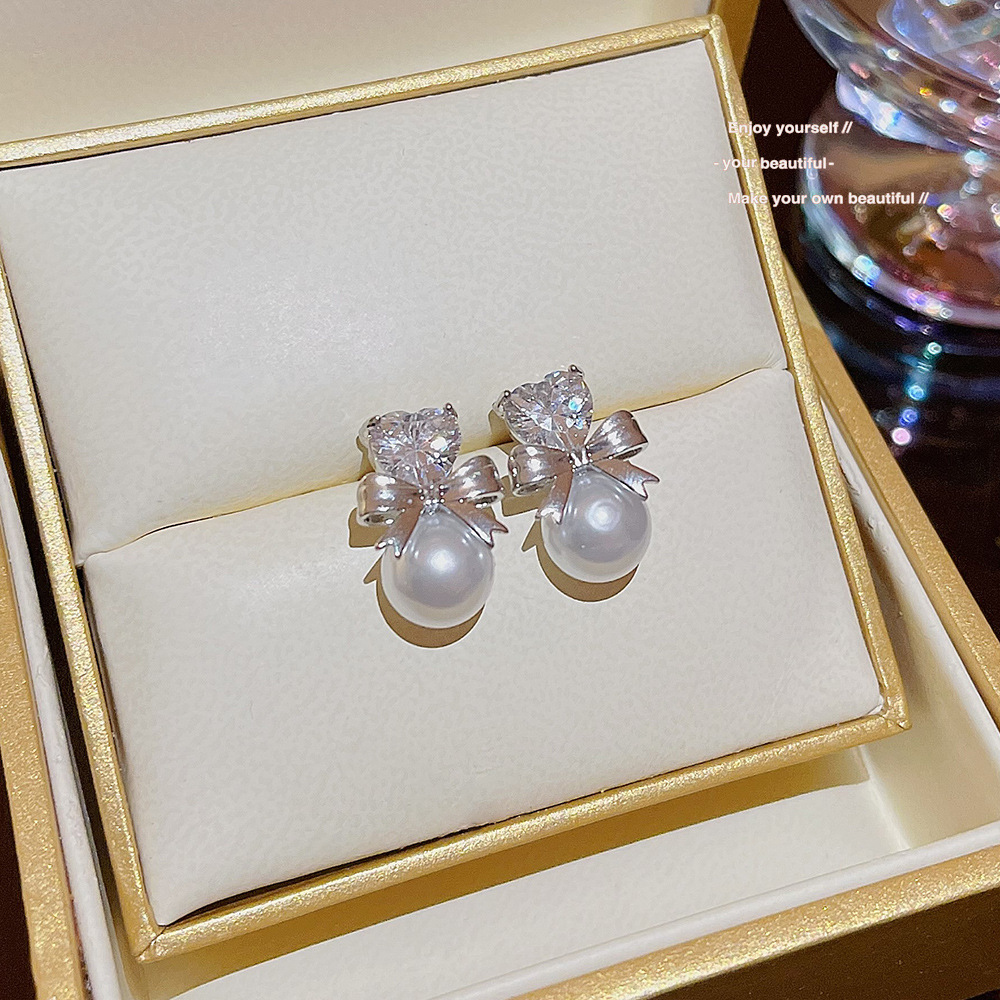 甜美可爱小巧精致珍珠蝴蝶结爱心耳环韩系高级感时尚小清新耳钉女