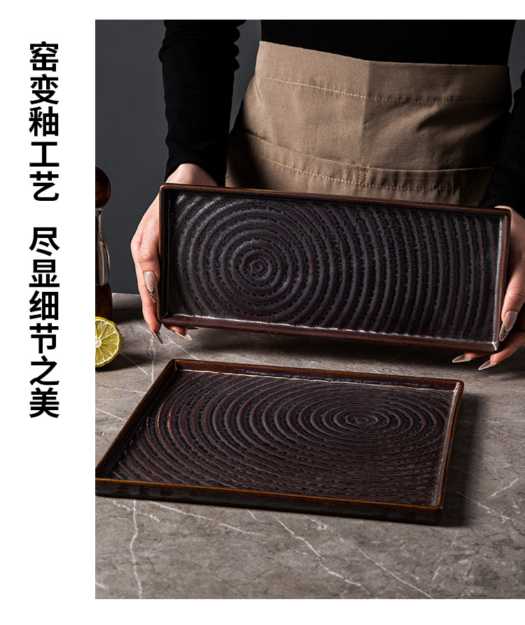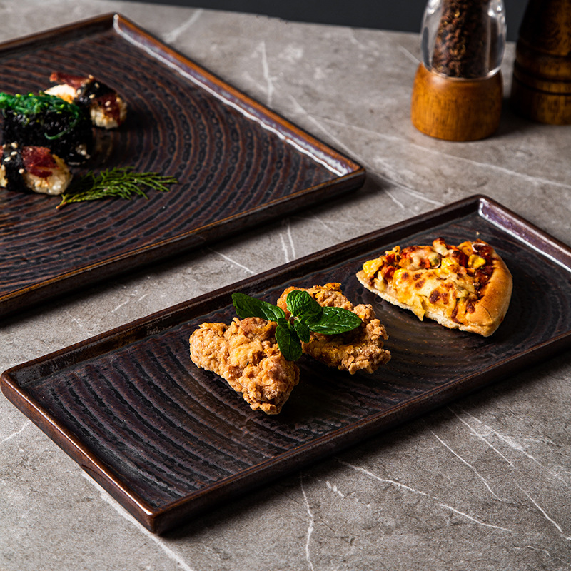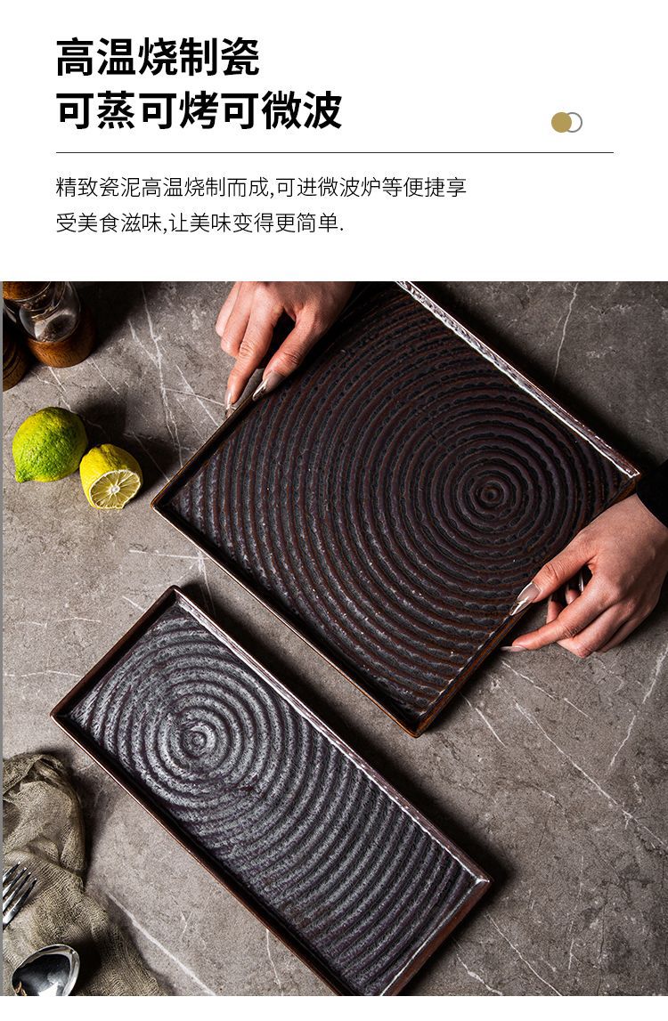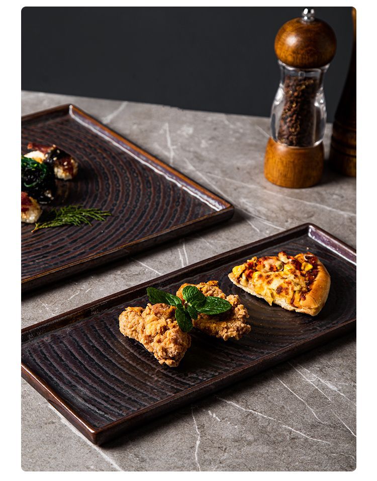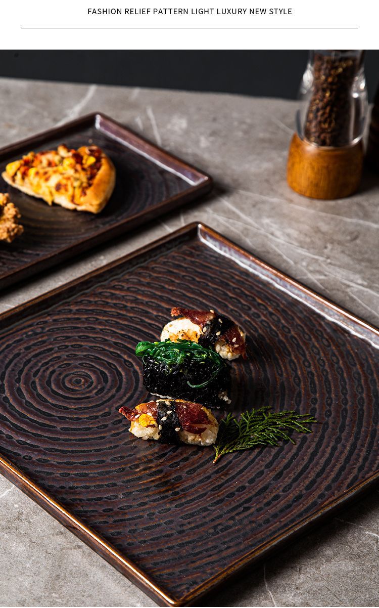 外贸出口日式复古陶瓷点心盘创意酒店餐厅意面盘长方寿司盘正方盘 English | 投诉