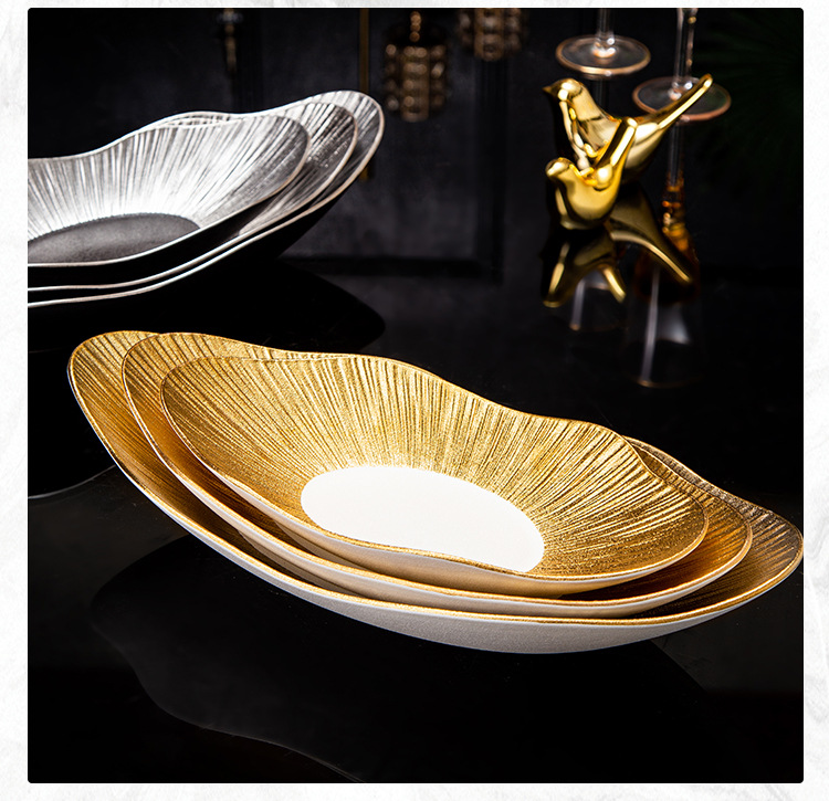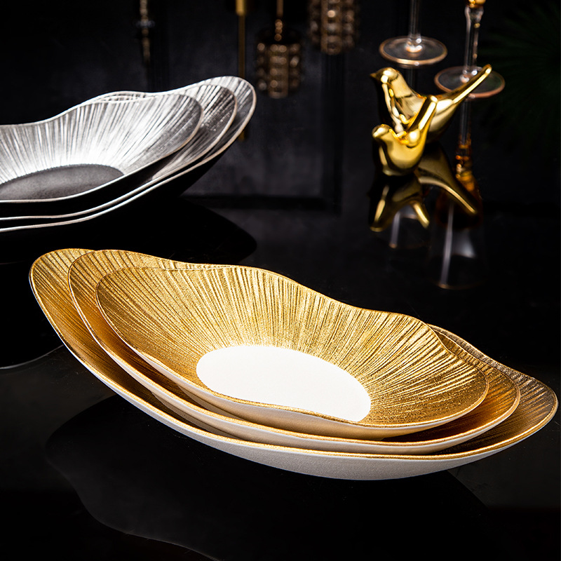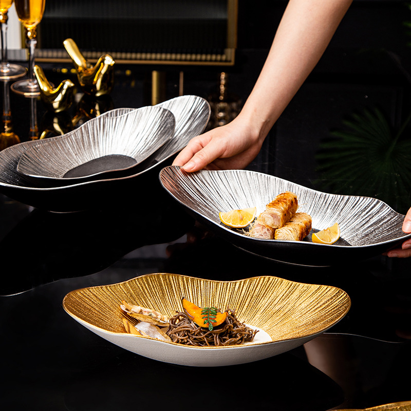 外贸出口高档轻奢陶瓷元宝盘创意酒店餐厅寿司点心盘意面盘亚马逊