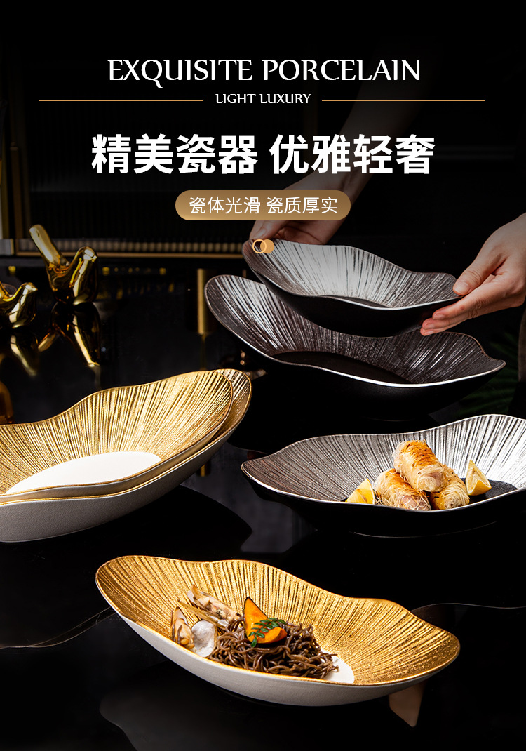 外贸出口高档轻奢陶瓷元宝盘创意酒店餐厅寿司点心盘意面盘亚马逊 English | 投诉