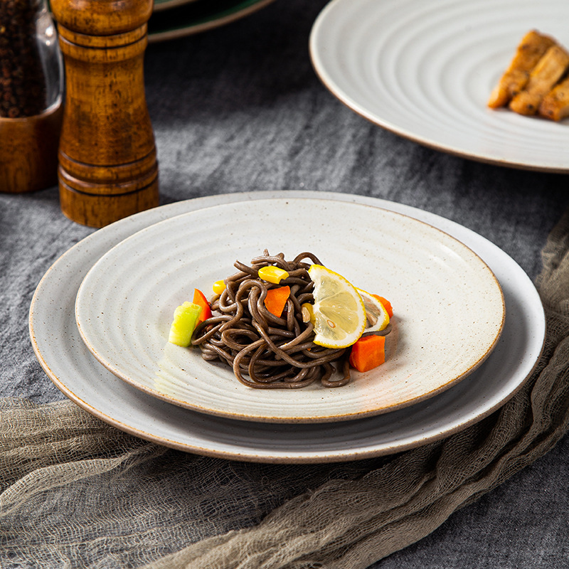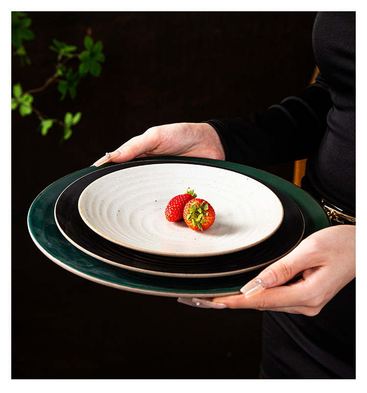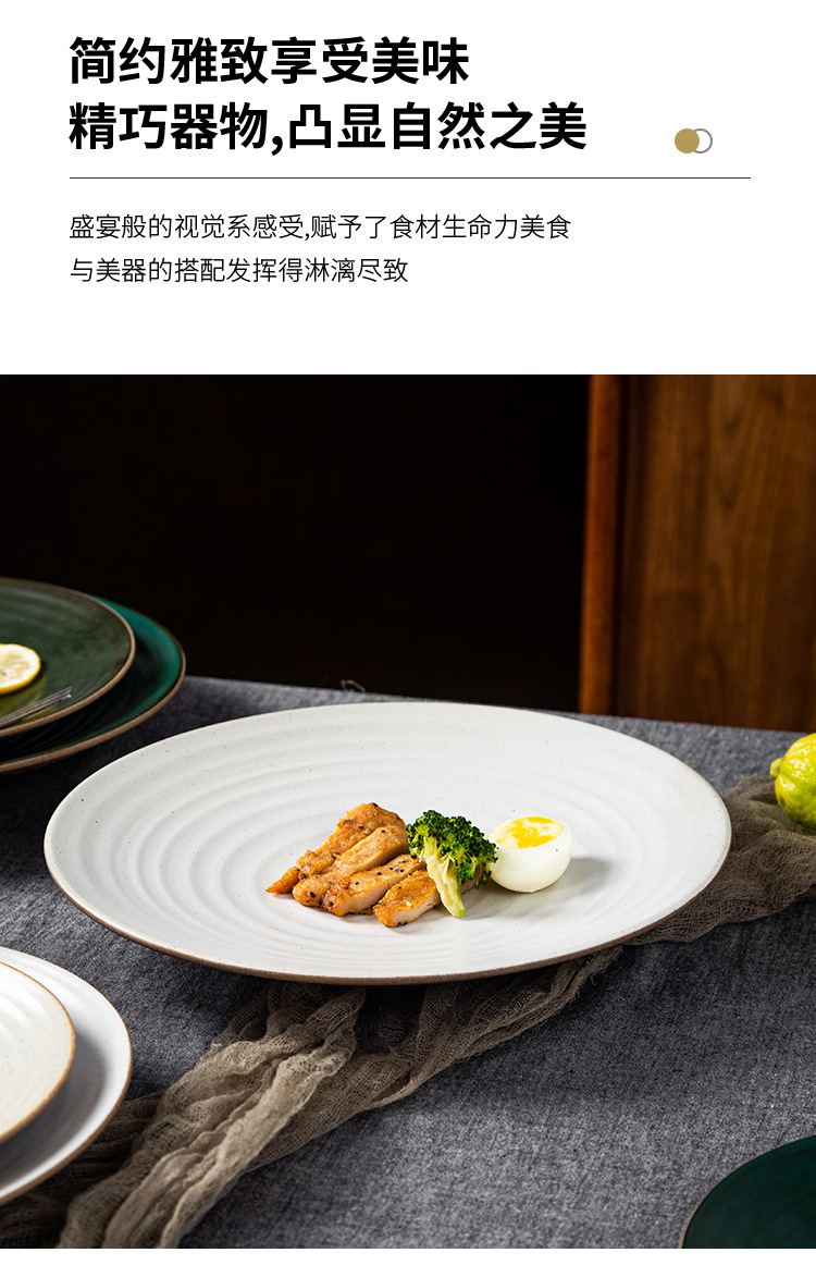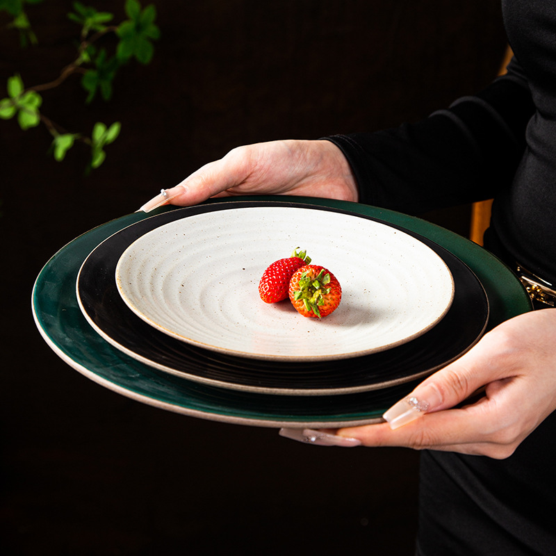 亚马逊跨境复古粗陶瓷盘子创意餐厅家用菜盘意面盘点心盘外贸出口