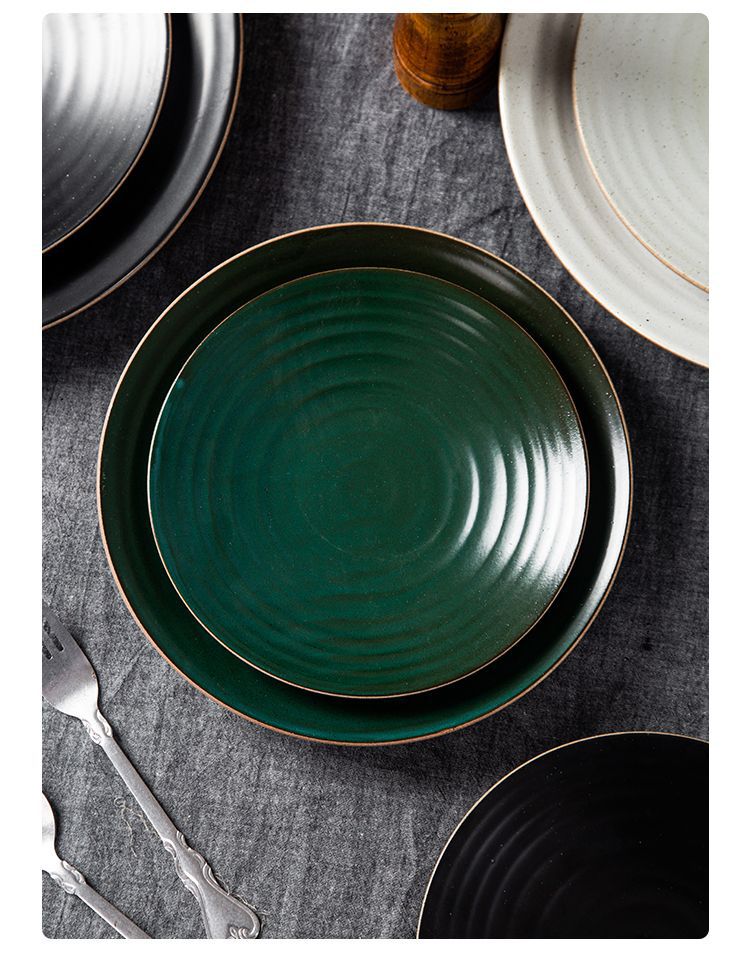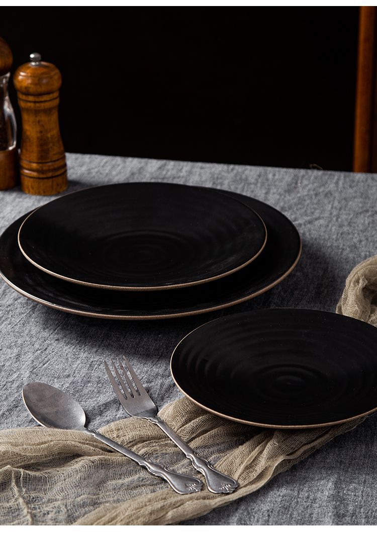 亚马逊跨境复古粗陶瓷盘子创意餐厅家用菜盘意面盘点心盘外贸出口 English | 投诉