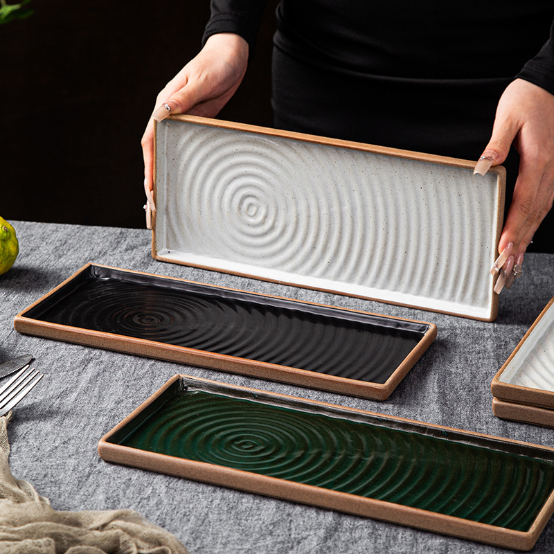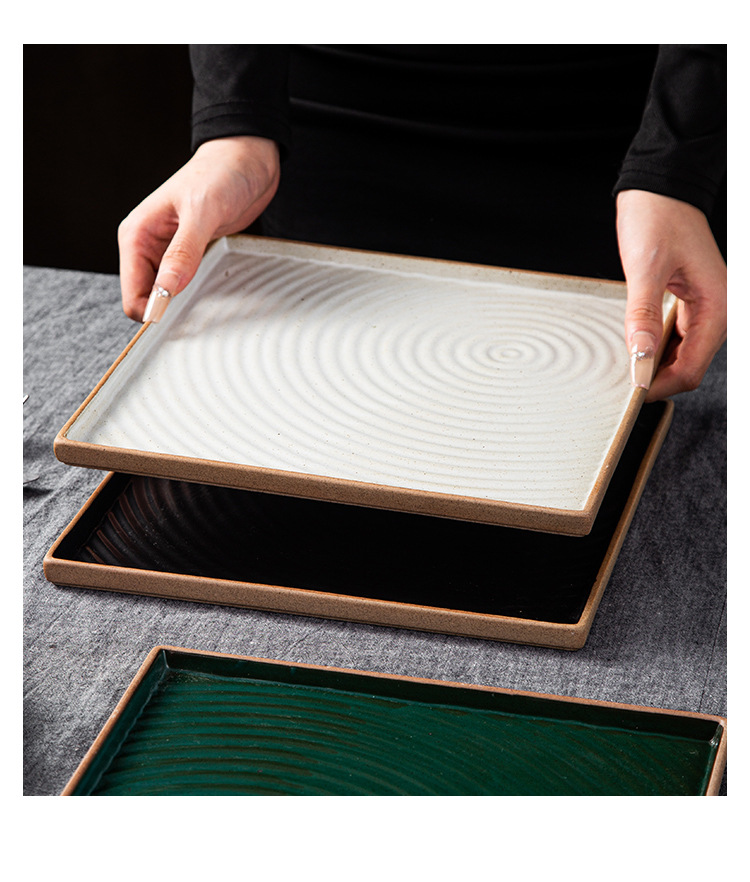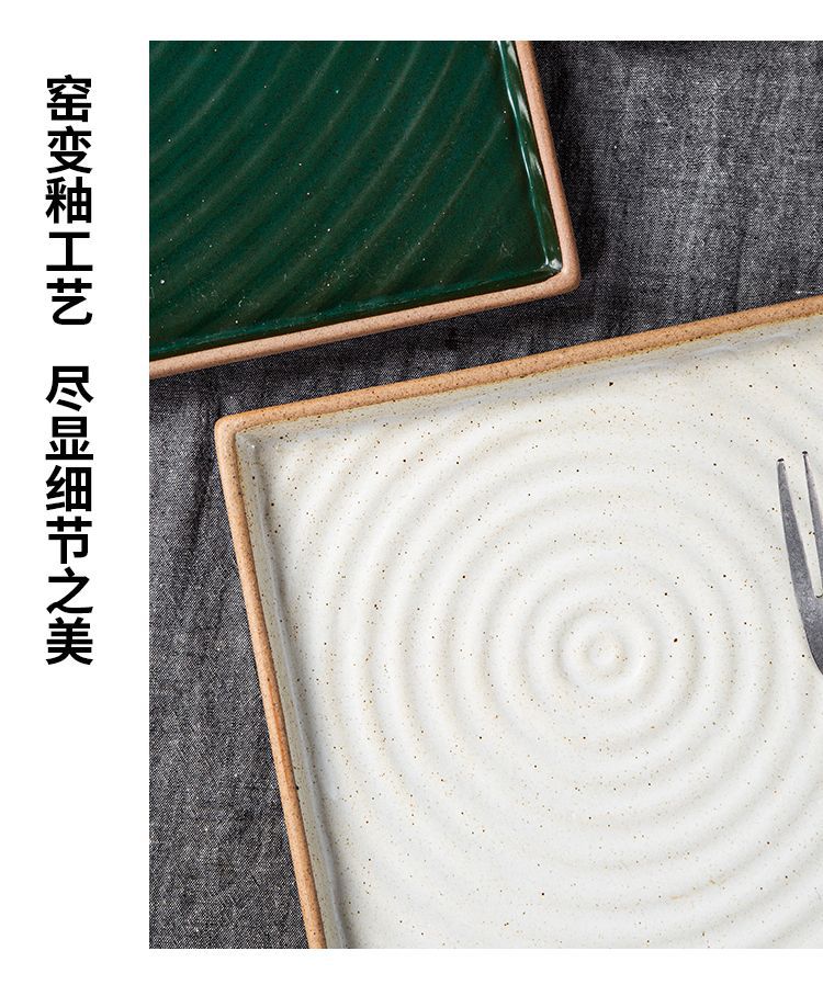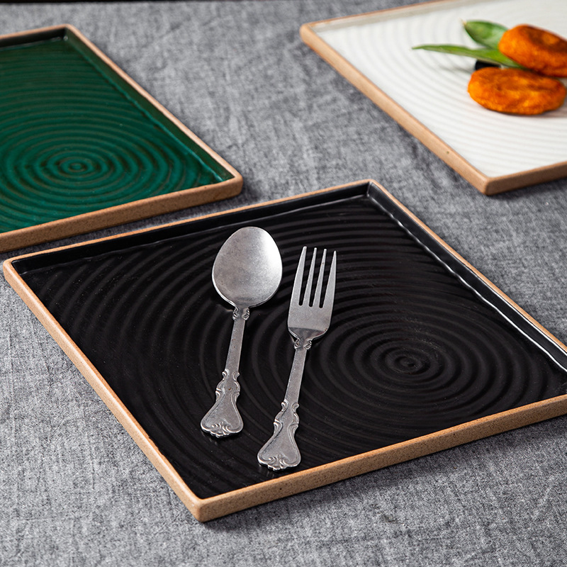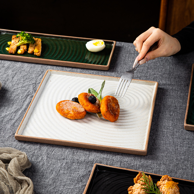 创意日式粗陶盘子复古手拉纹正方盘长方盘家用餐厅寿司盘外贸出口 English | 投诉