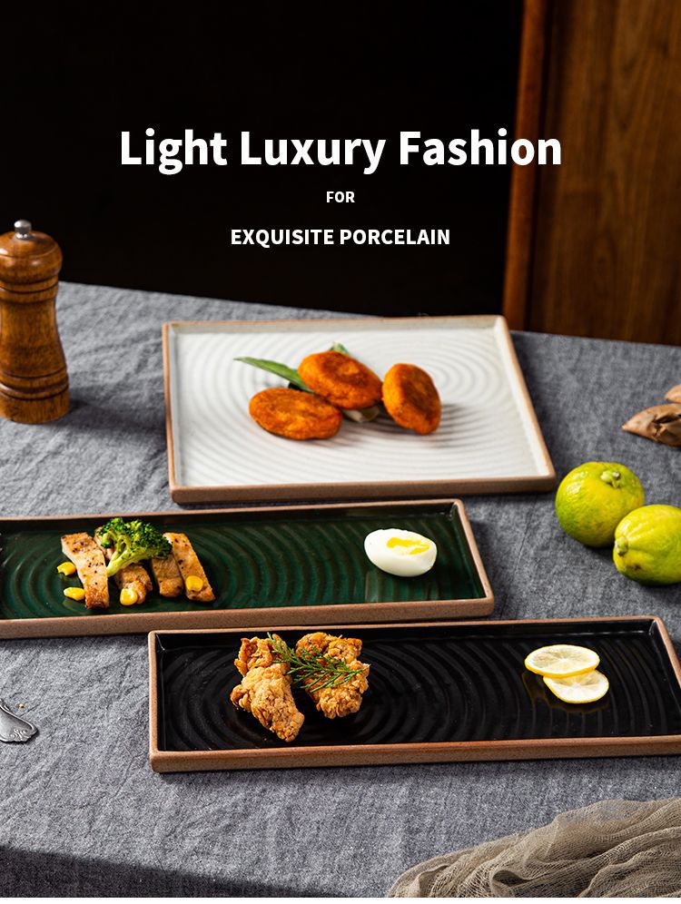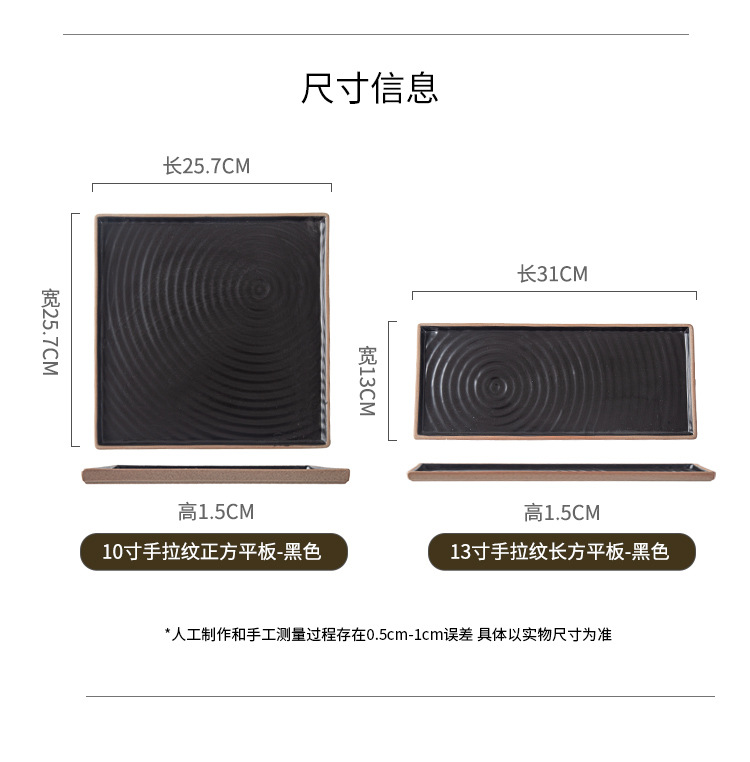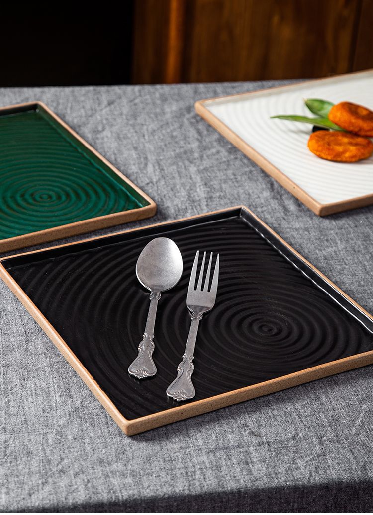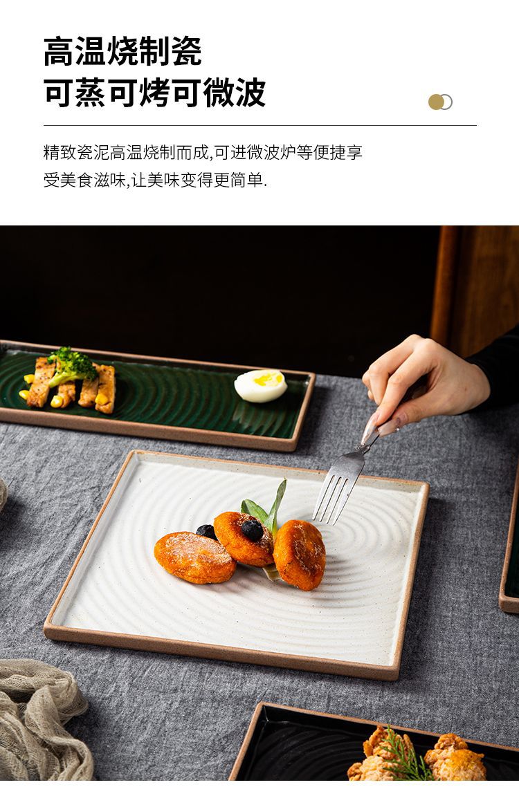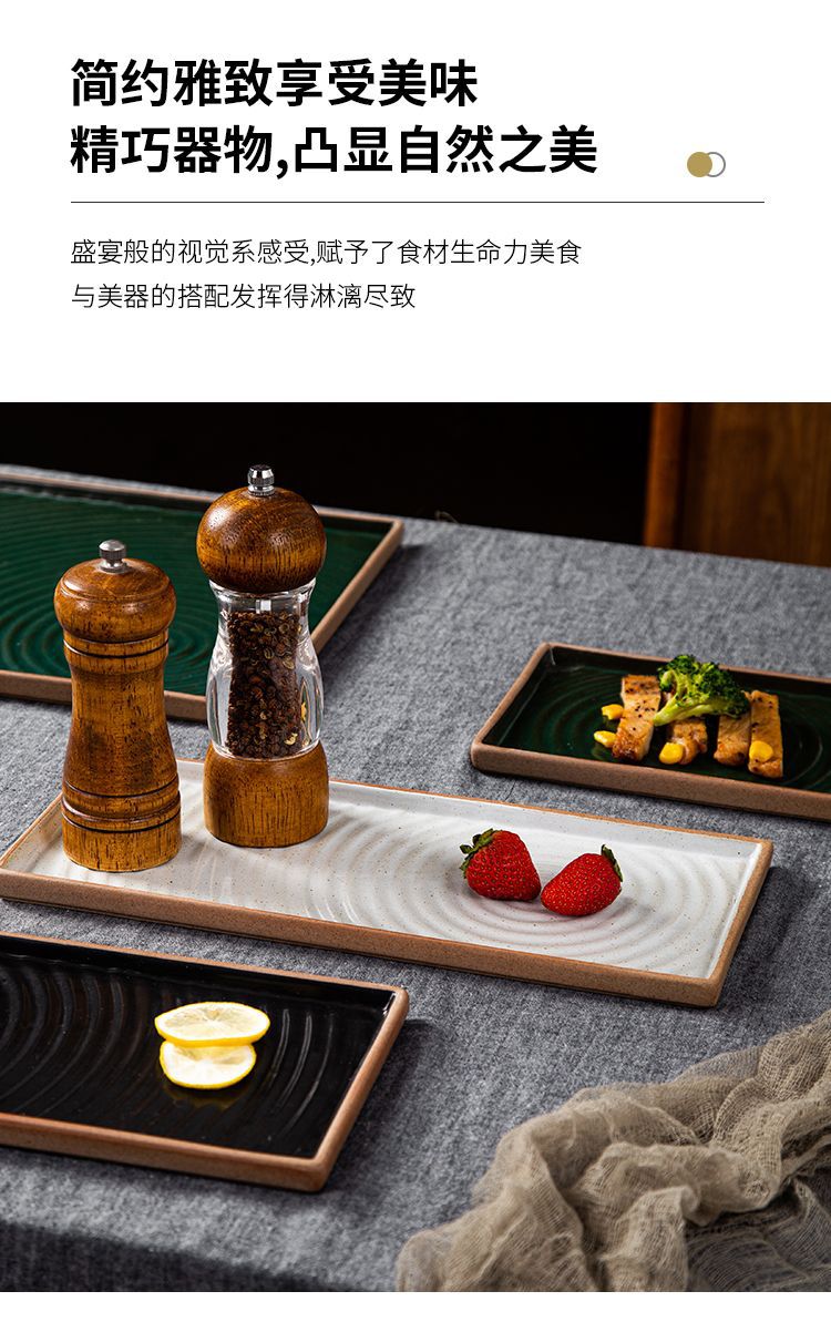 创意日式粗陶盘子复古手拉纹正方盘长方盘家用餐厅寿司盘外贸出口 English | 投诉