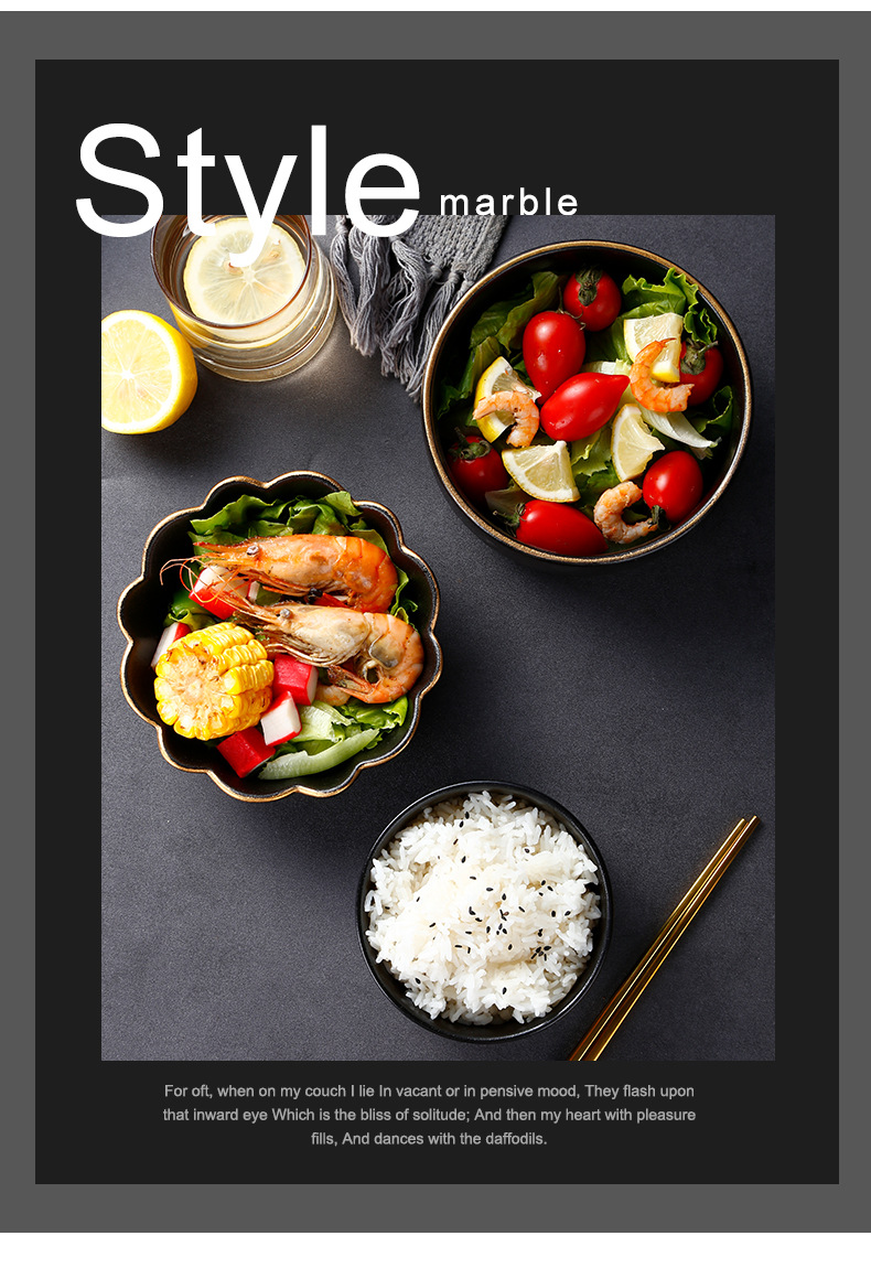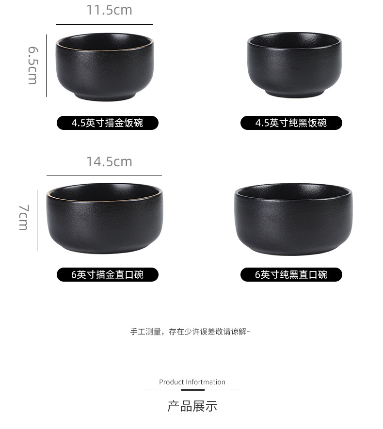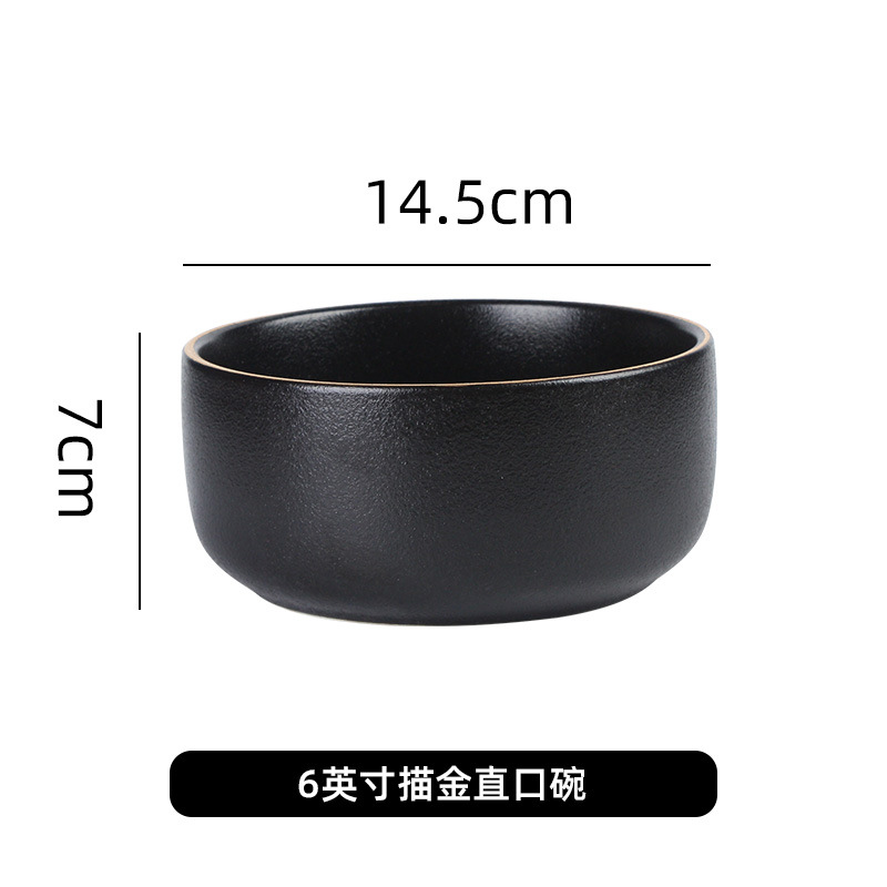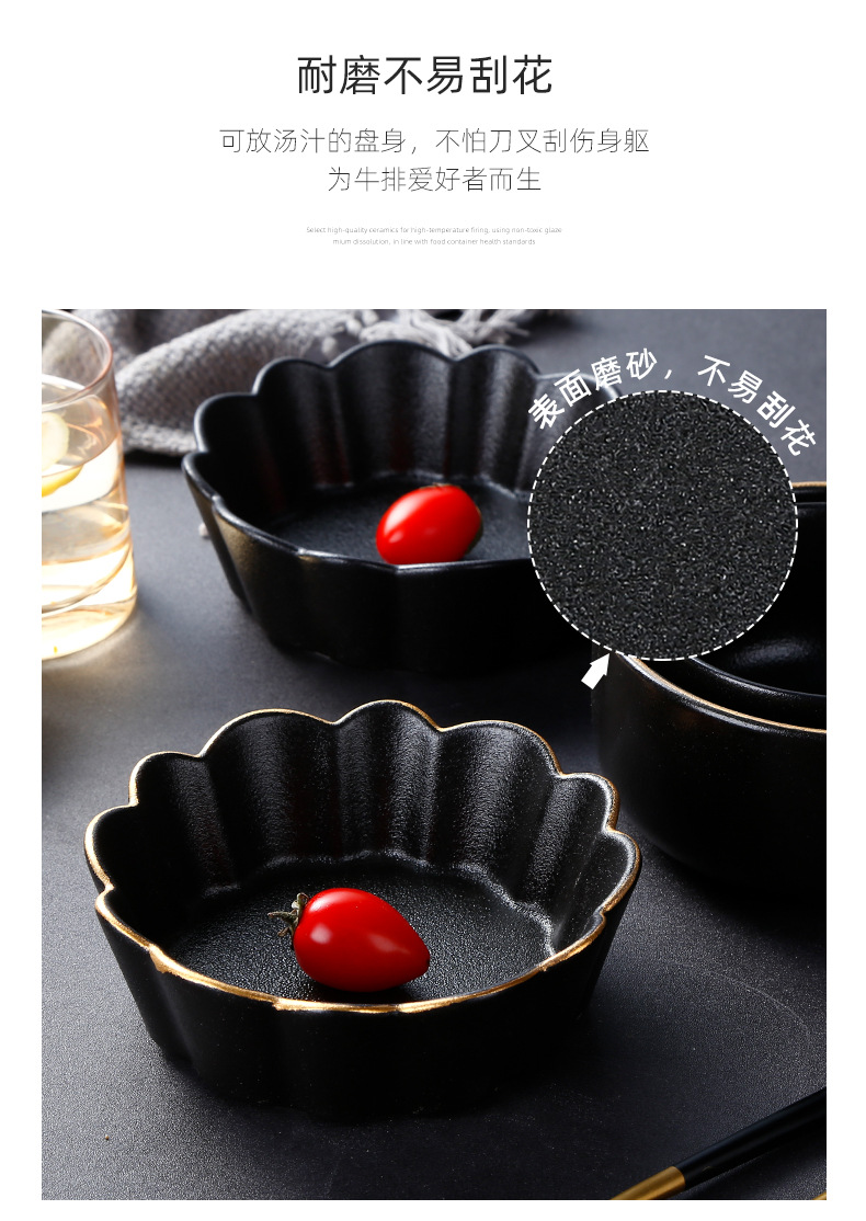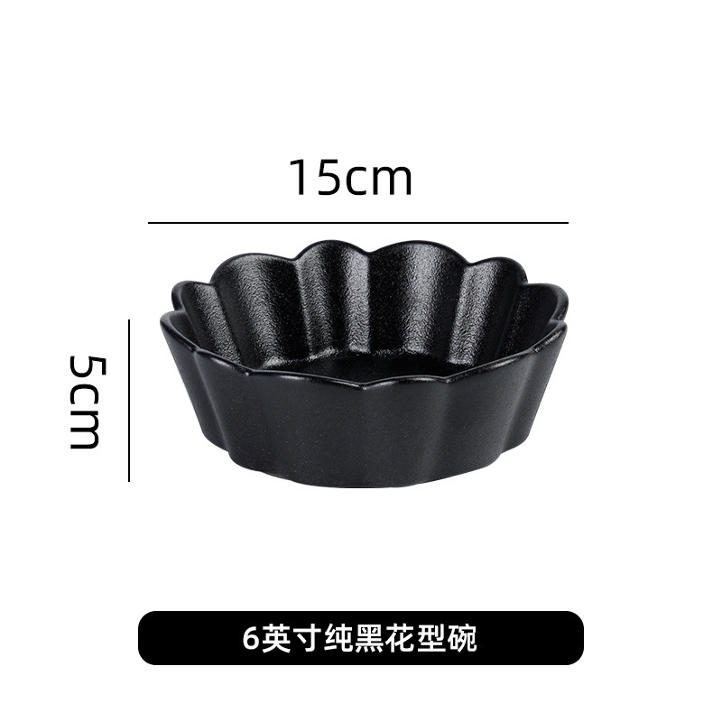 创意磨砂黑色釉陶瓷花型碗餐厅家用饭碗面碗水果沙拉碗带金边烤箱 English | 投诉