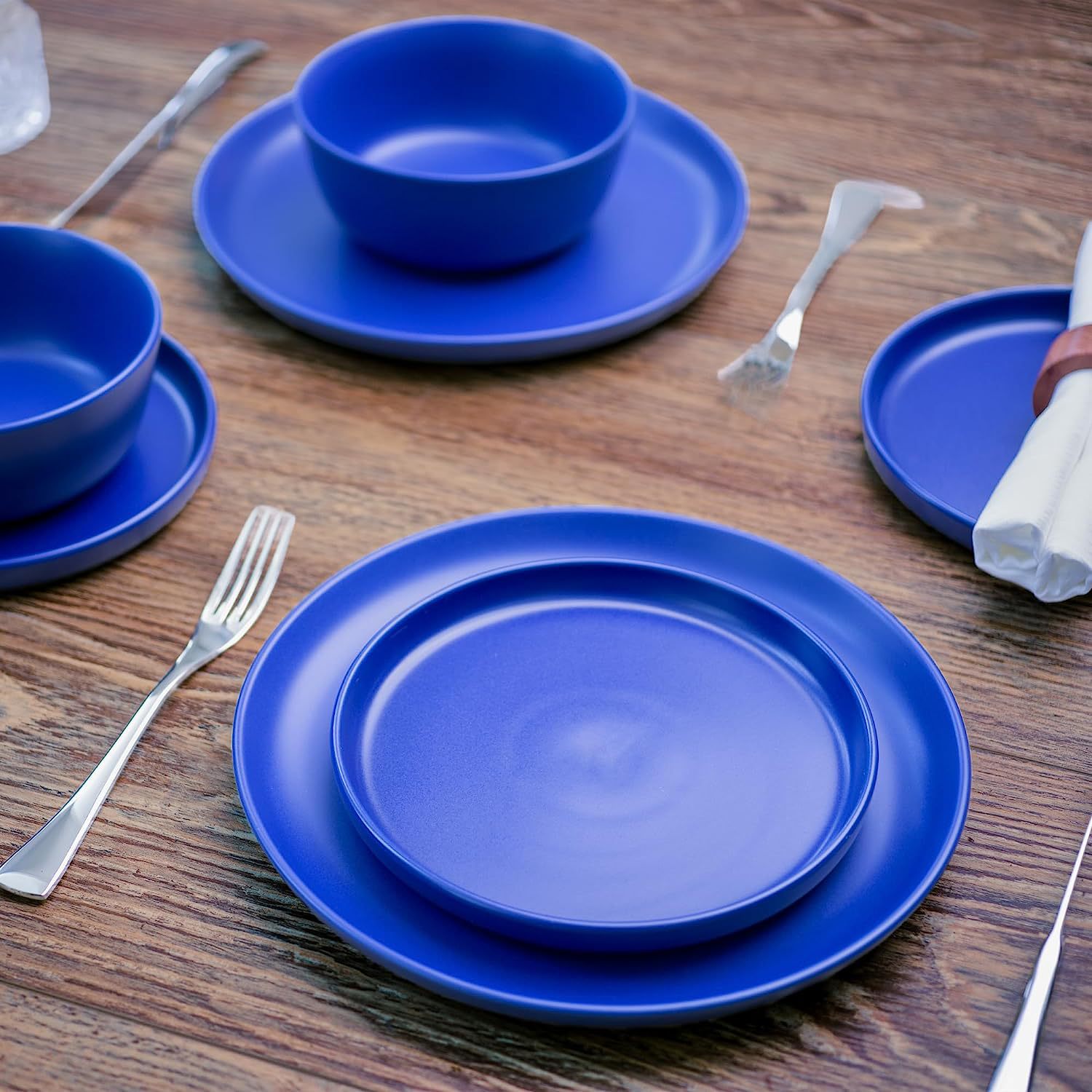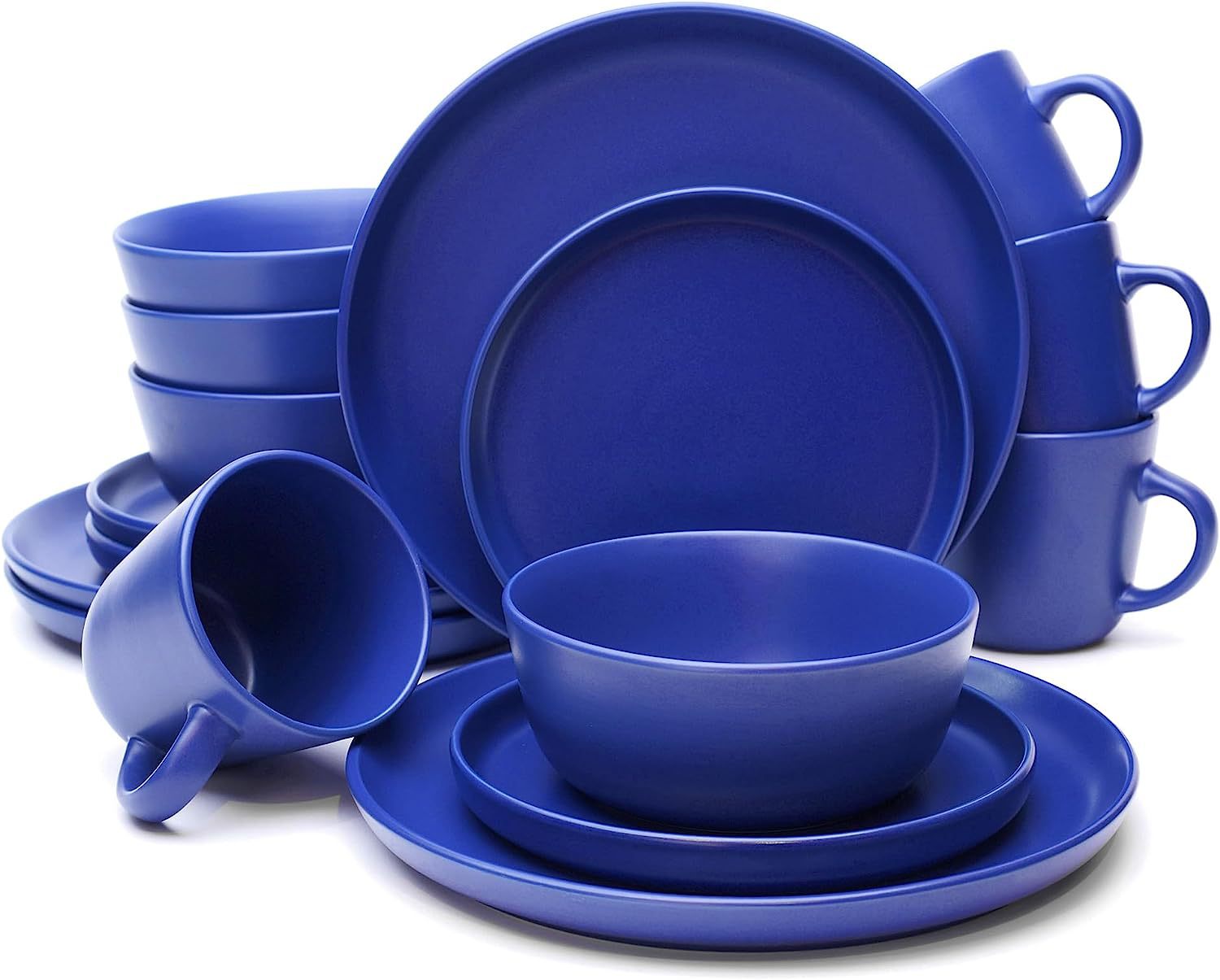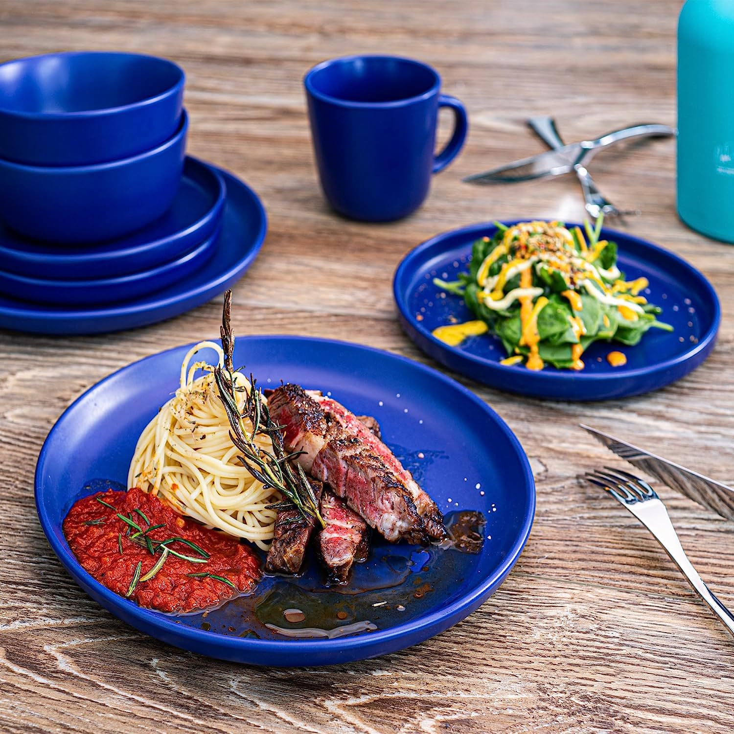外贸出口蓝色色釉16件套陶瓷餐具创意家用沙拉碗牛排盘马克杯套装