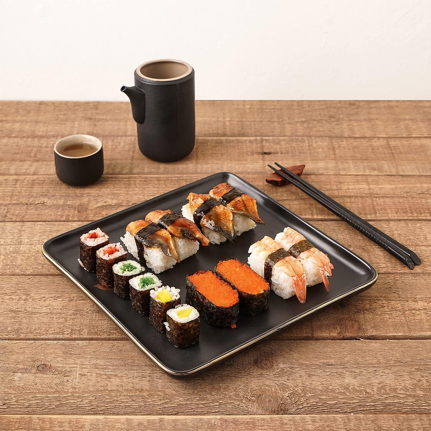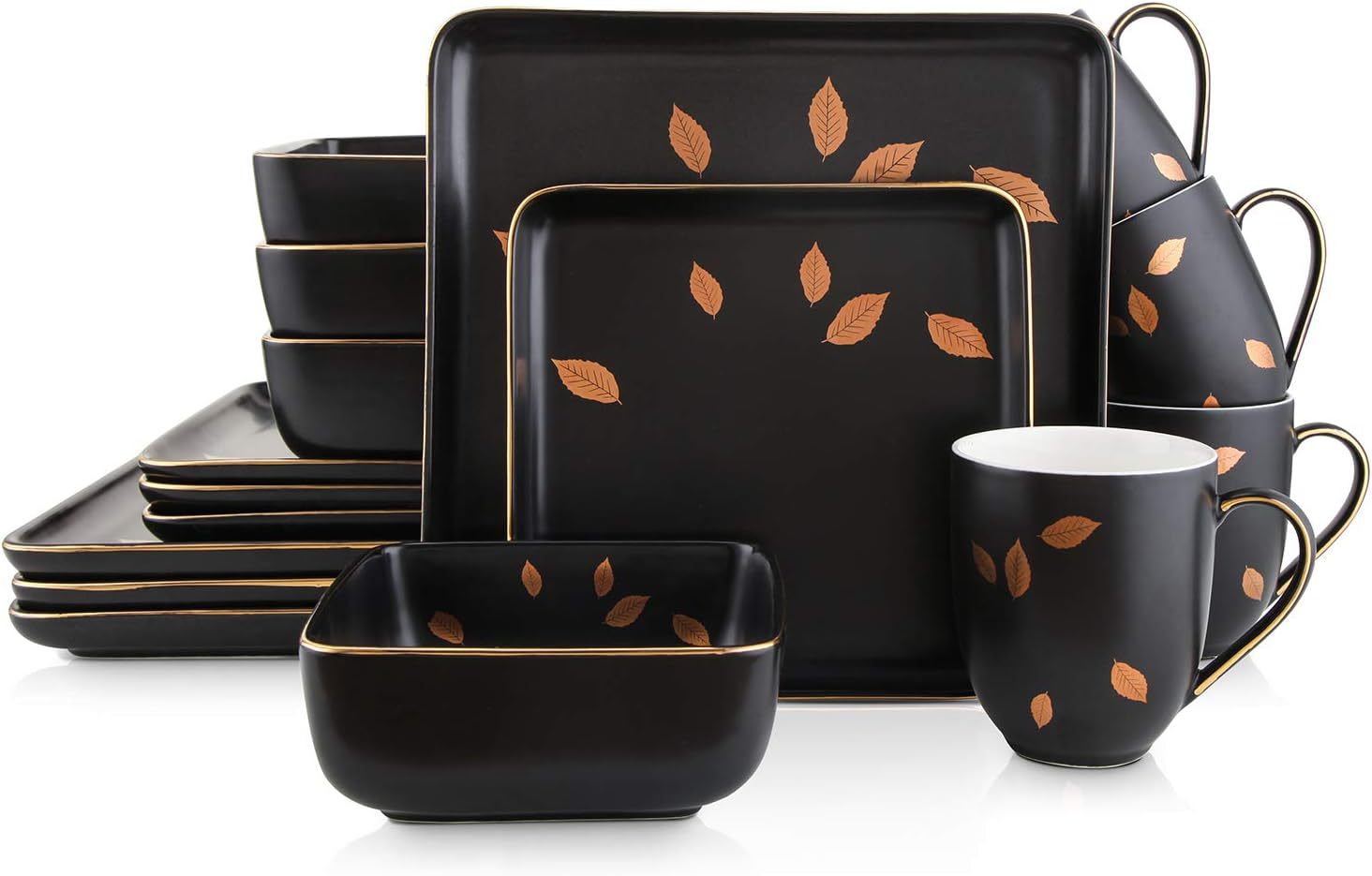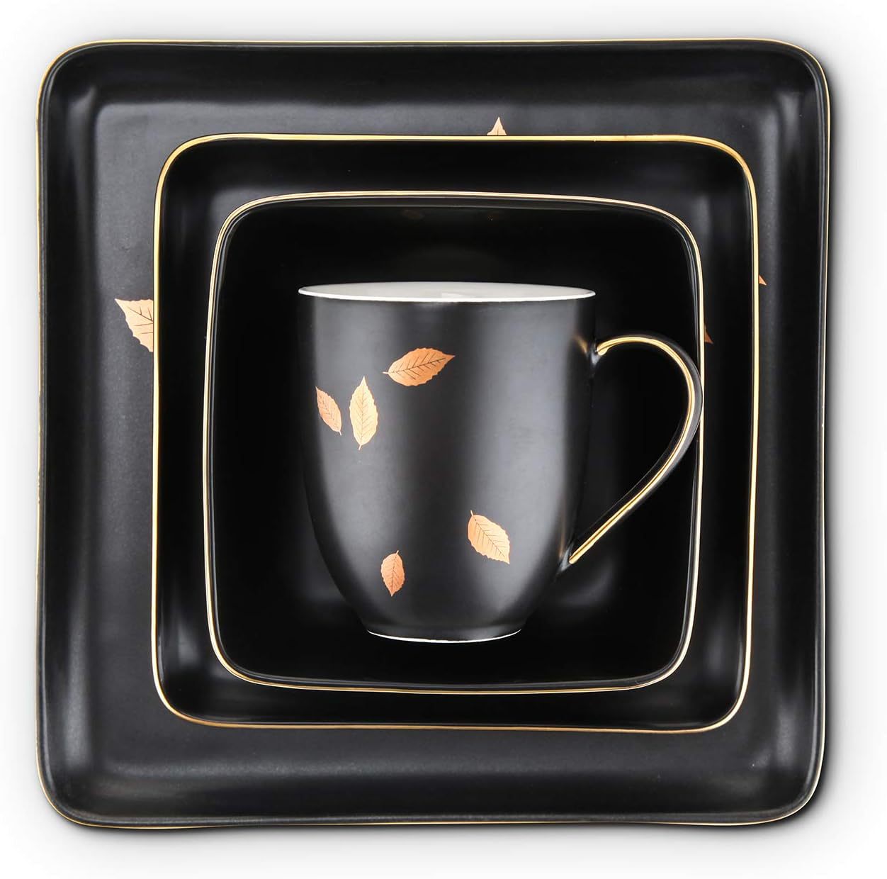 外贸出口黑色金边16件套陶瓷餐具套装创意家用四方碗蛋糕盘马克杯