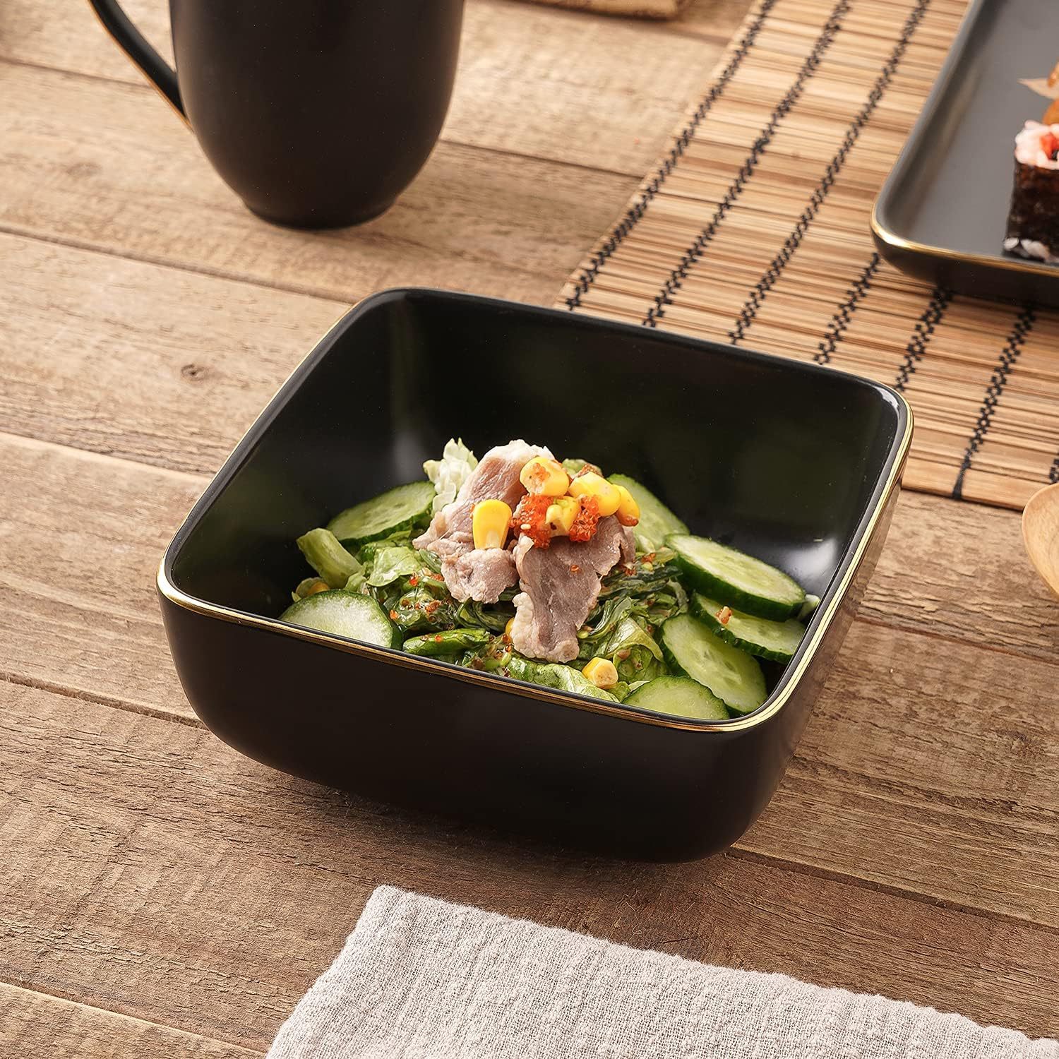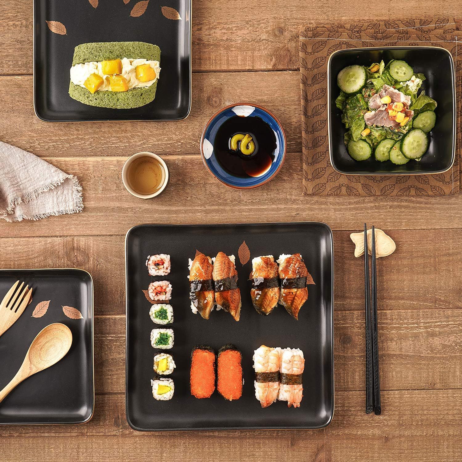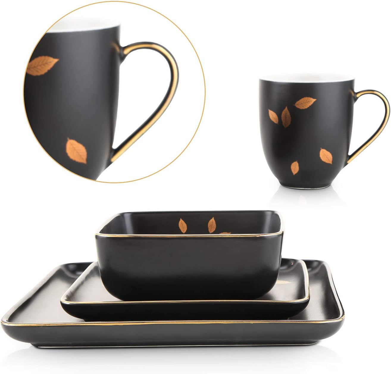 外贸出口黑色金边16件套陶瓷餐具套装创意家用四方碗蛋糕盘马克杯 English | 投诉