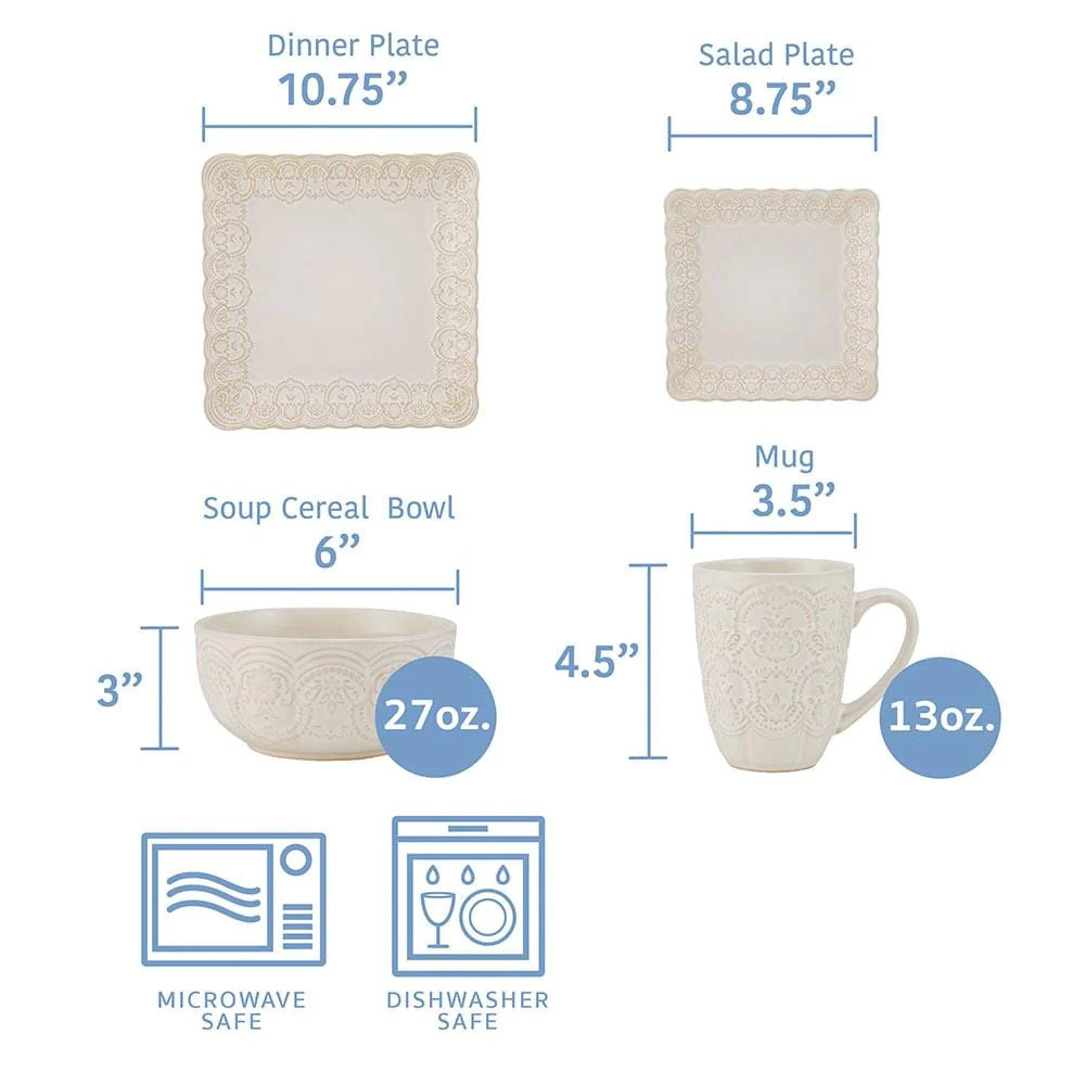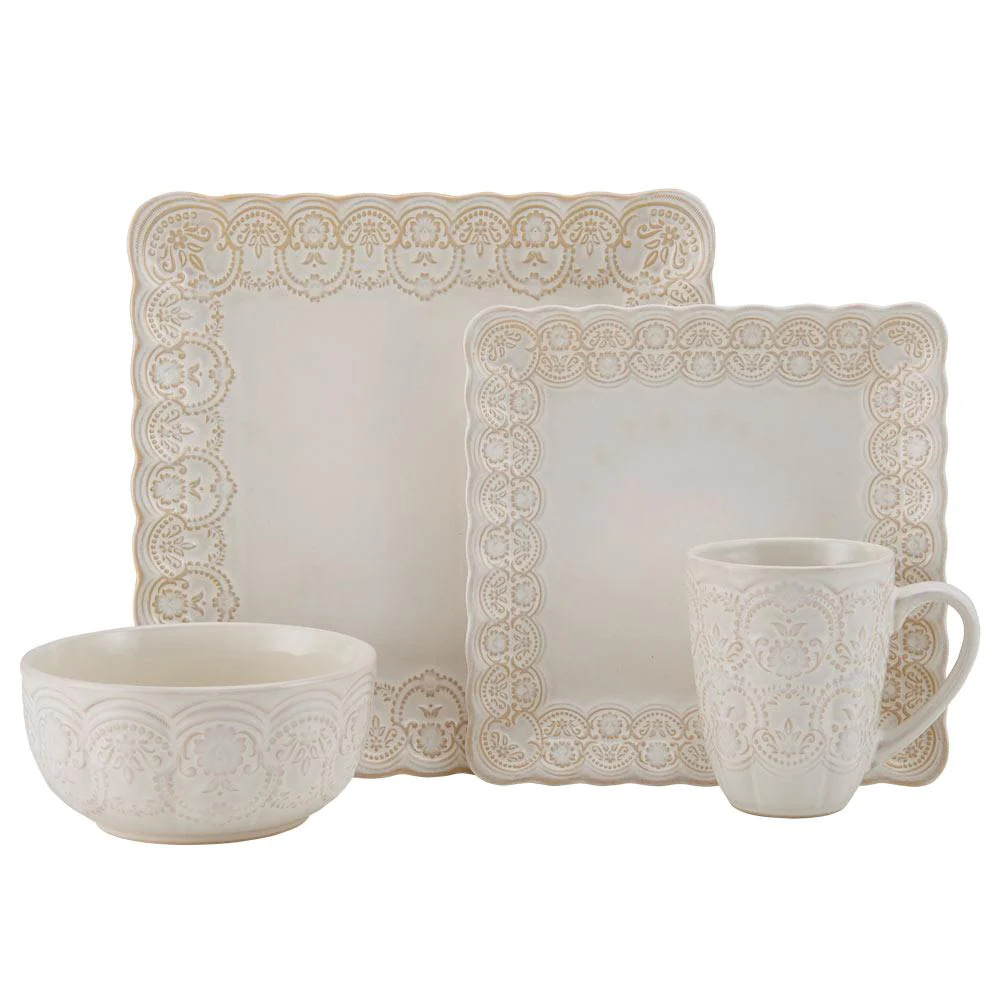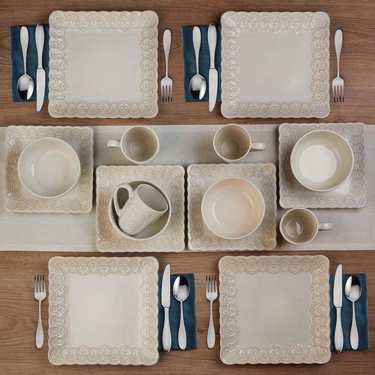 欧美外贸出口浮雕花纹16头陶瓷餐具套装创意四方形西餐盘沙拉碗 English | 投诉