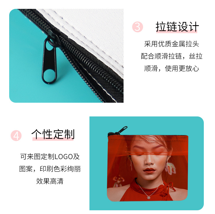亚马逊热销热转印创意零钱包便携式收纳钱包潜水布拉链钱包