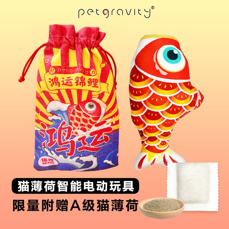 跨境宠物玩具鸿运锦鲤电动逗猫玩具鱼耐咬解闷猫薄荷猫咪用品批发