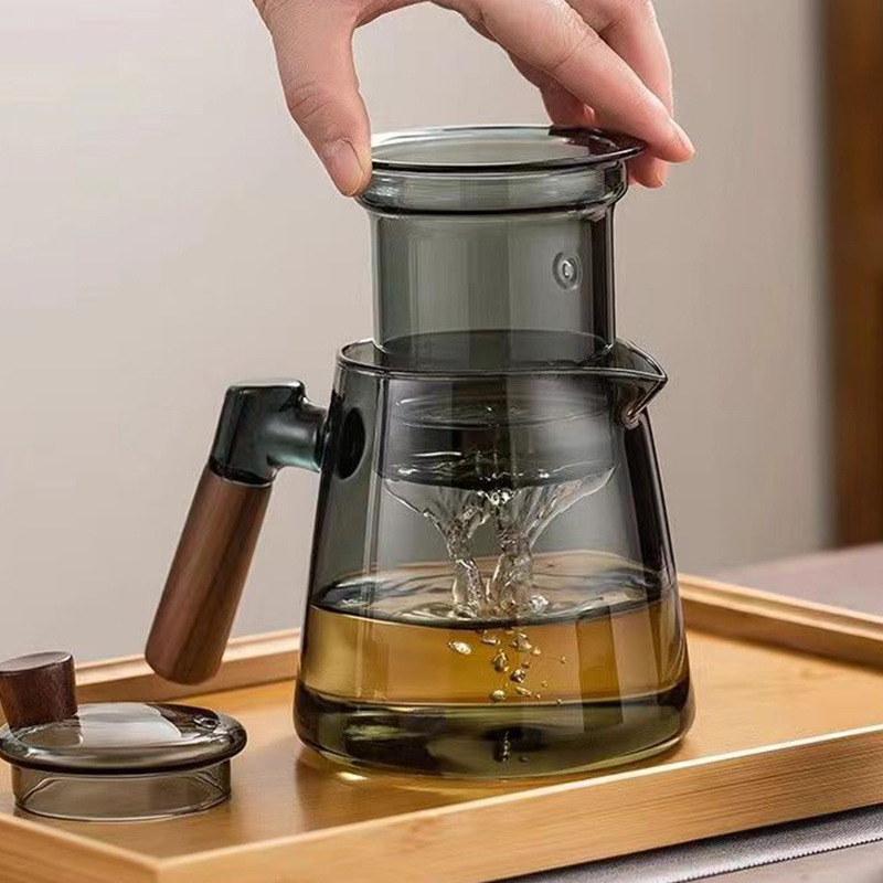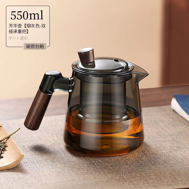 现货高硼硅烟灰色泡茶壶胡桃木把玻璃茶具家用加厚茶壶套装茶壶 English | 投诉