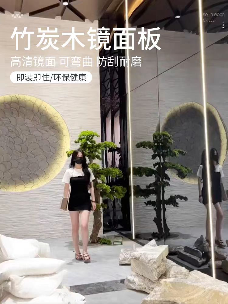 5mm碳晶黑色镜面板实心高光墙面板KTV酒店主题电竞房护墙板 投诉