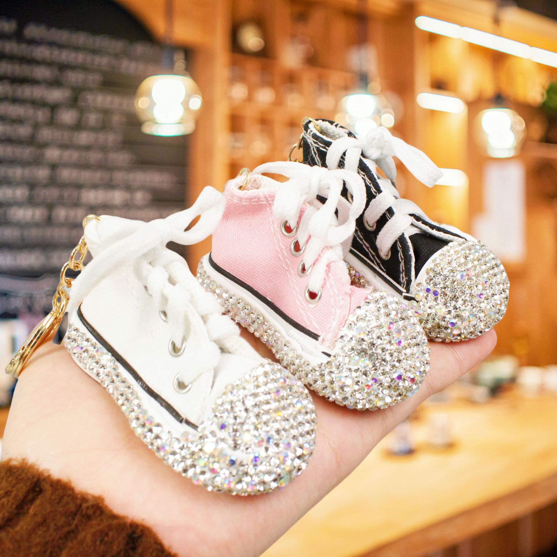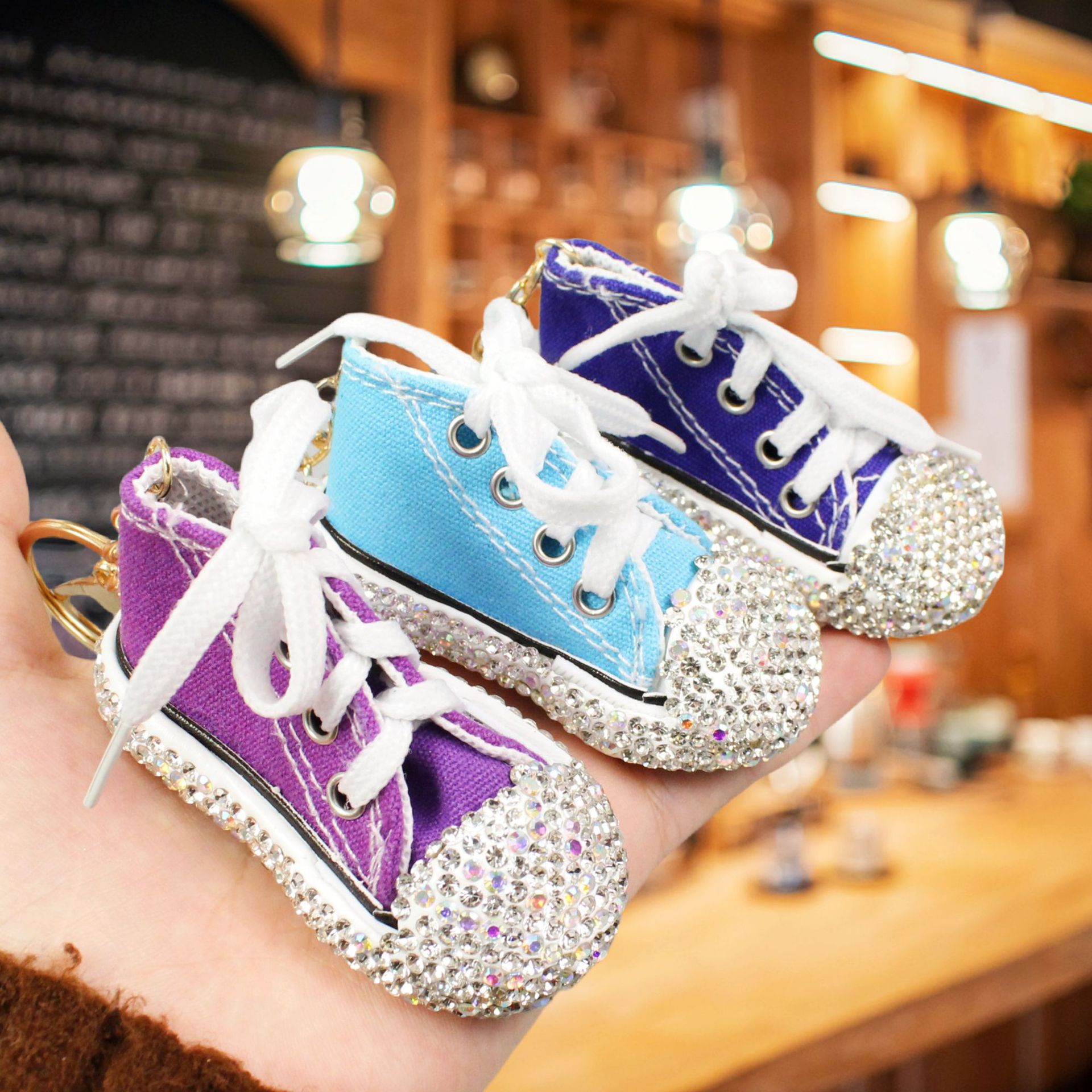 创意镶钻迷你帆布小鞋子钥匙扣情侣挂件汽车包包挂饰糖果色系礼品