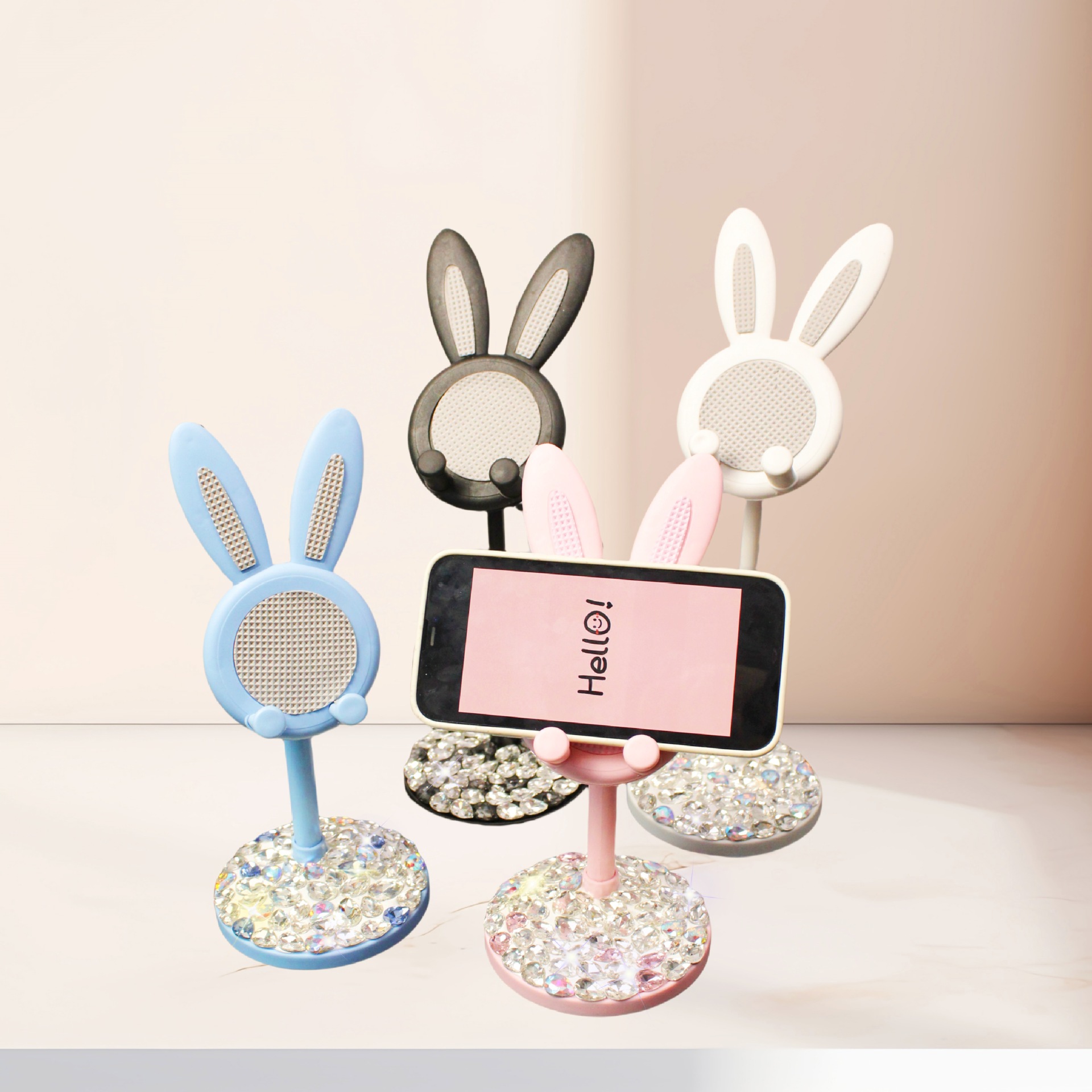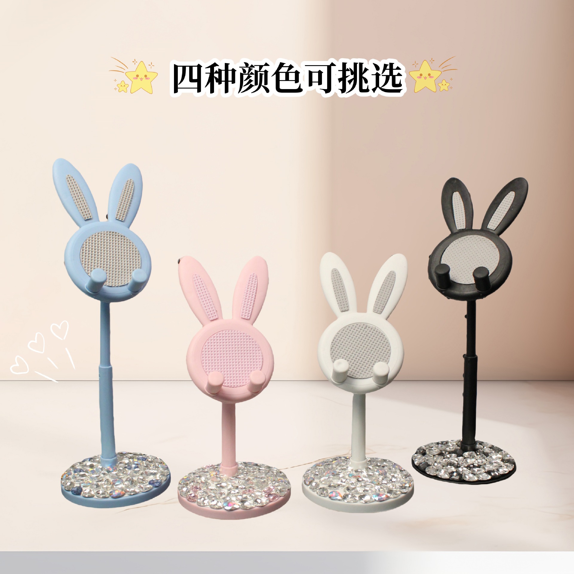 手机桌面多功能升降可调节小兔子手机支架创意卡通可爱小 兔子支