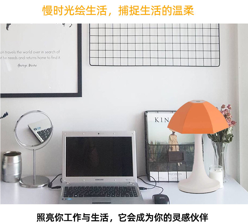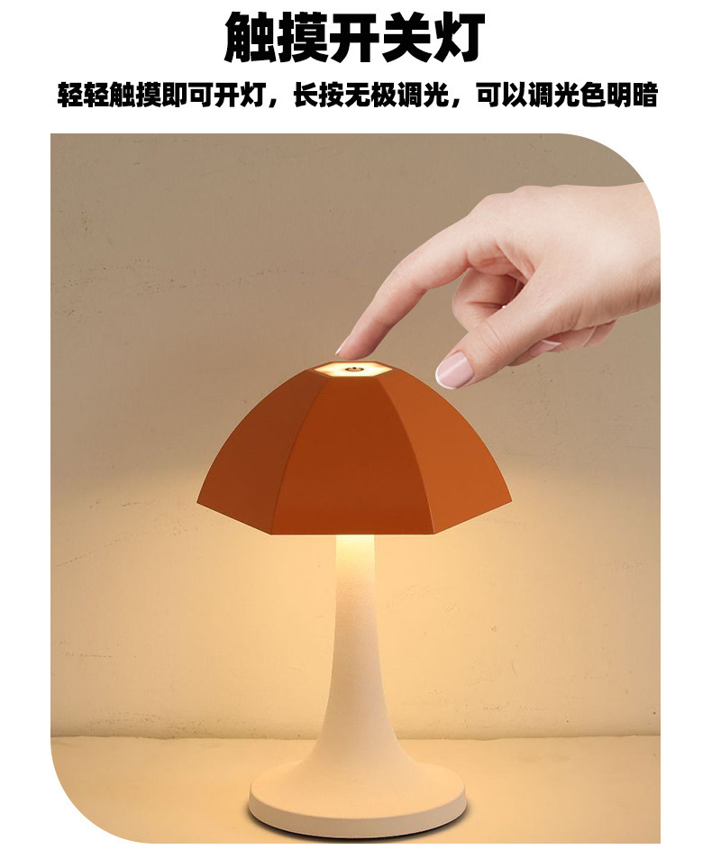 LED Nordic Rechargeable Portable Table Lamp Touch Dimmable Mushroom Table Lights Living Room Bedroom Designer Atmosphere。
