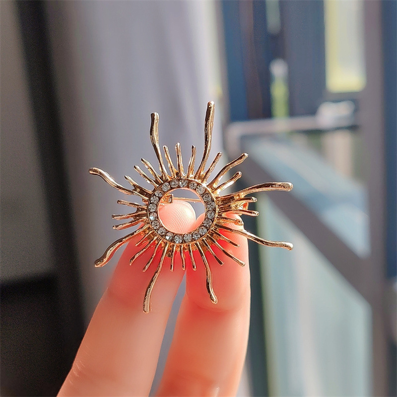 欧美外贸金属太阳神徽章胸针仿水晶超闪气质胸花时尚西装大衣别针 English | 投诉