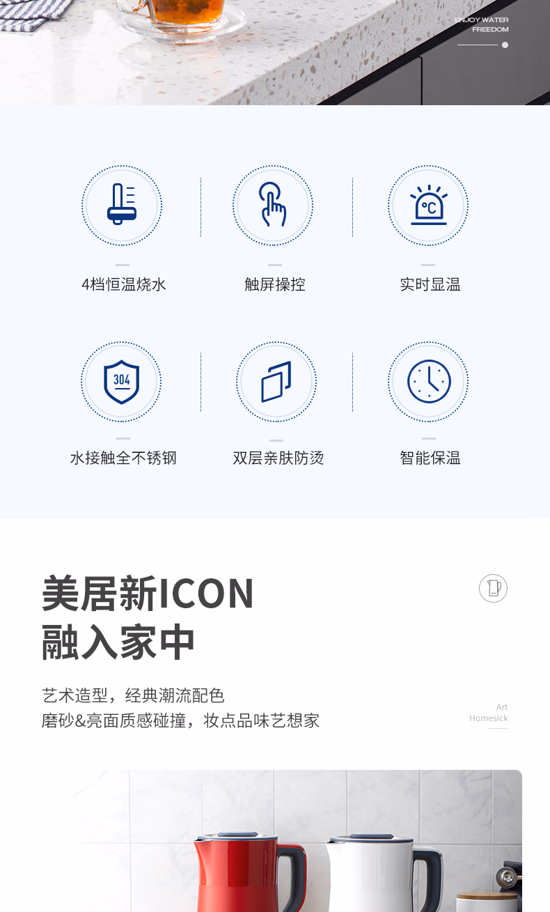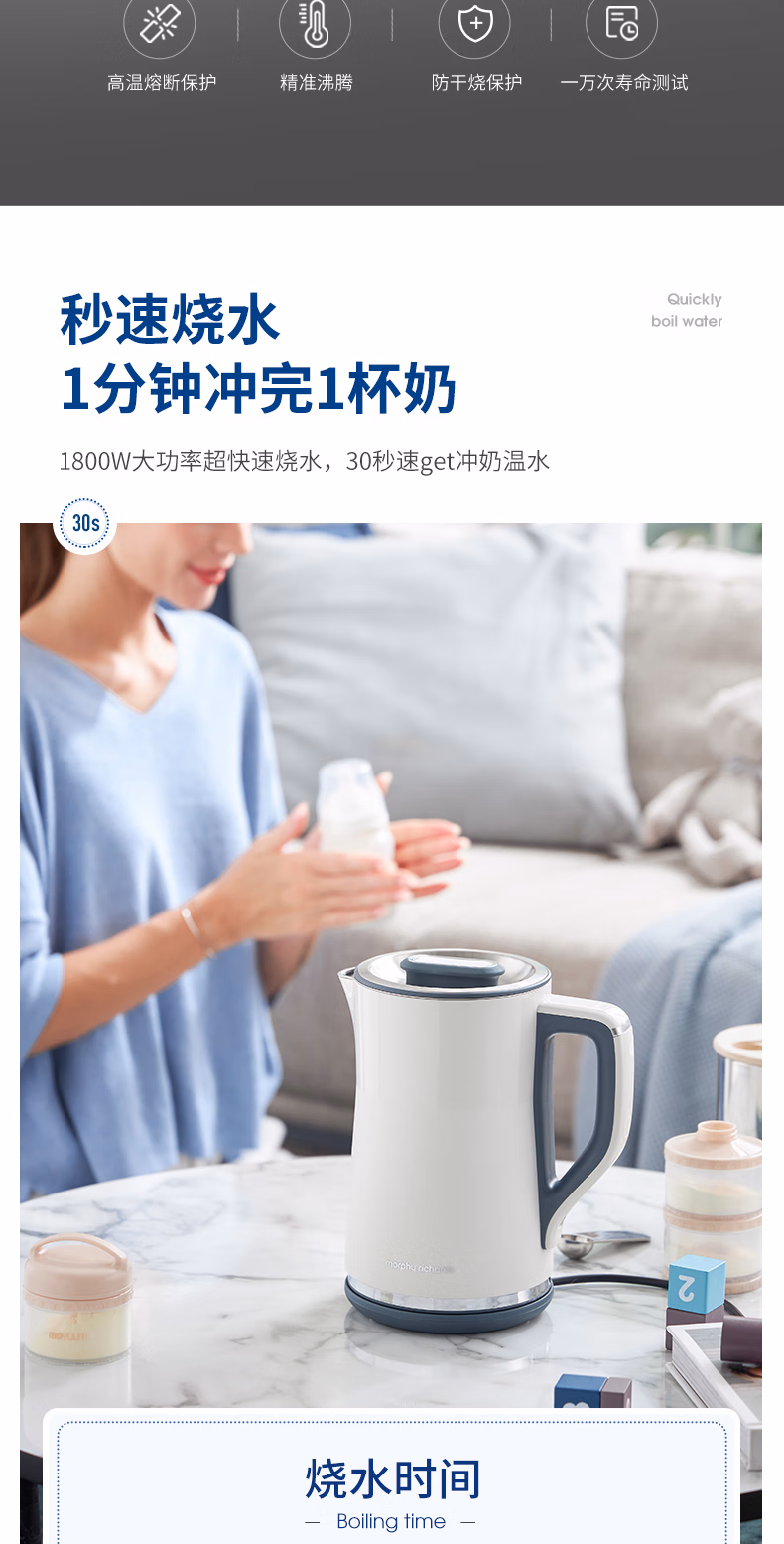 批发包邮 YOUNGFOOD智能小家电摩飞电热水壶MR6070不锈钢双层防烫 投诉