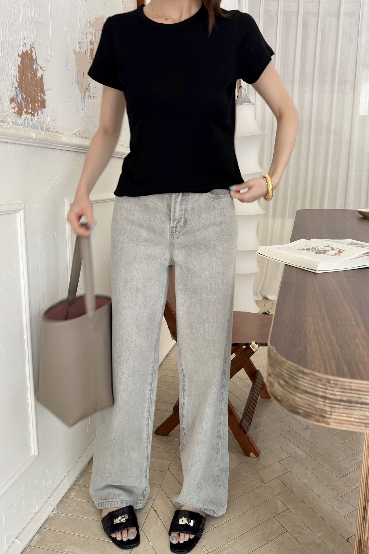 款名:Eglitta 高腰阔腿牛仔裤